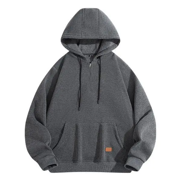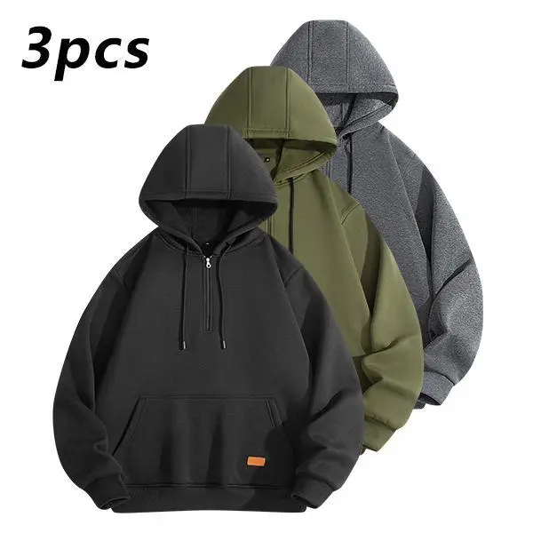 🌟 Men's Autumn Winter Hoodie 🌟 Perfect for Cold Weather This hoodie is ideal for cold weather. It features a thick fleece lining for warmth. The half zip design ensures easy wear. The drawstring adjustable hat adds extra comfort. A large pocket keeps your essentials secure. Perfect for business, everyday use, travel, and tourism. Suitable for various occasions. Whether for business, everyday use, travel, or tourism, this hoodie is a versatile choice. The combination of features makes it a practical option for many needs.