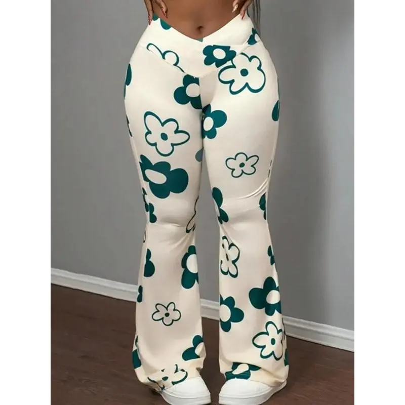 Women's Casual Floral Print Pants, Long Loose-Fitting Denim Jeans, Comfortable Daily Wear, Perfect for Spring & Fall