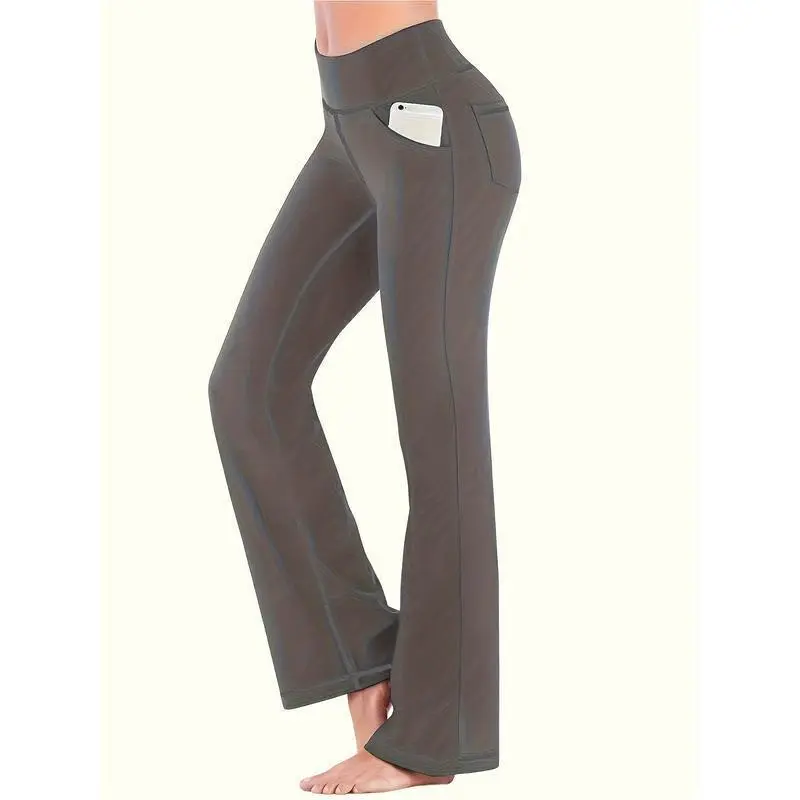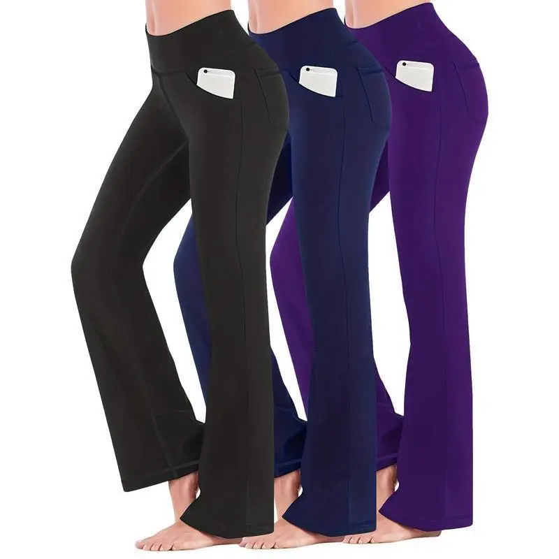 3 Pack Women's Plus Size Sports Pants Set Solid Wide Waistband Flared Leg Yoga Trousers With Phone Pockets Breathable Fabric Suitable Spring/Autumn - Perfect Yoga, Fiess & Everyday Wear