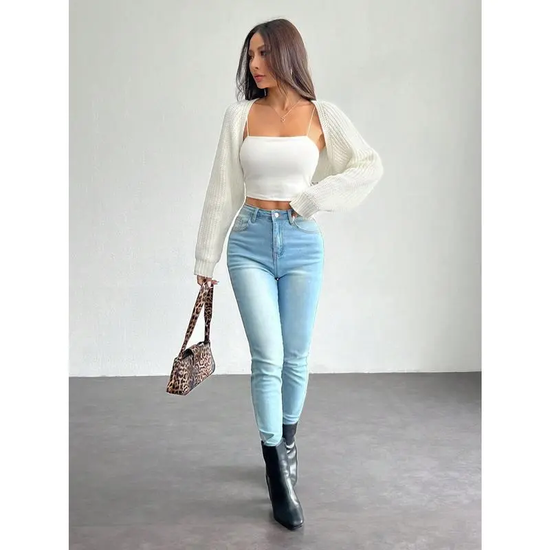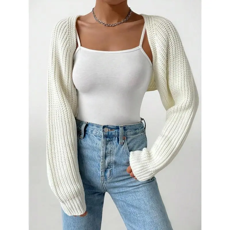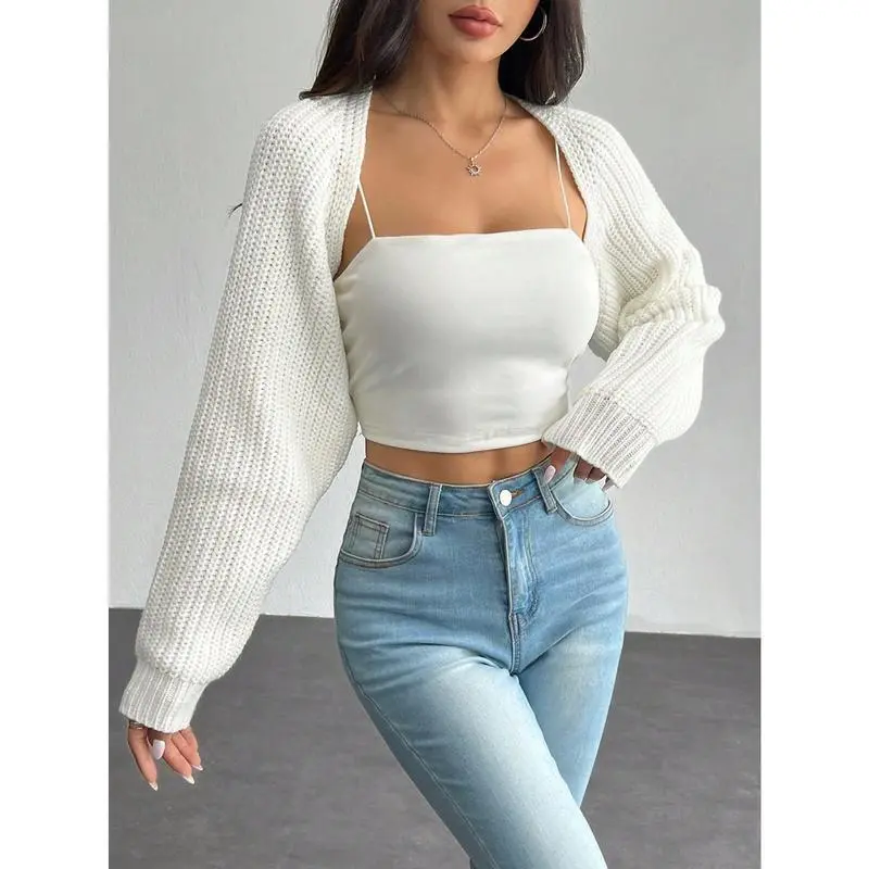 Women's Ribbed Knit Shrug Crop Cardigan �C Balletcore Style Raglan Sleeve Sweater for Layered Outfits, Fall or Spring Wear Tops White Casual Knitwear Womenswear Basic Minimalist Short Knitting Fabric
