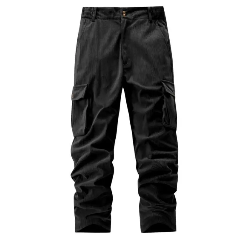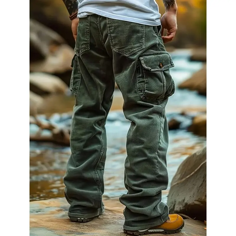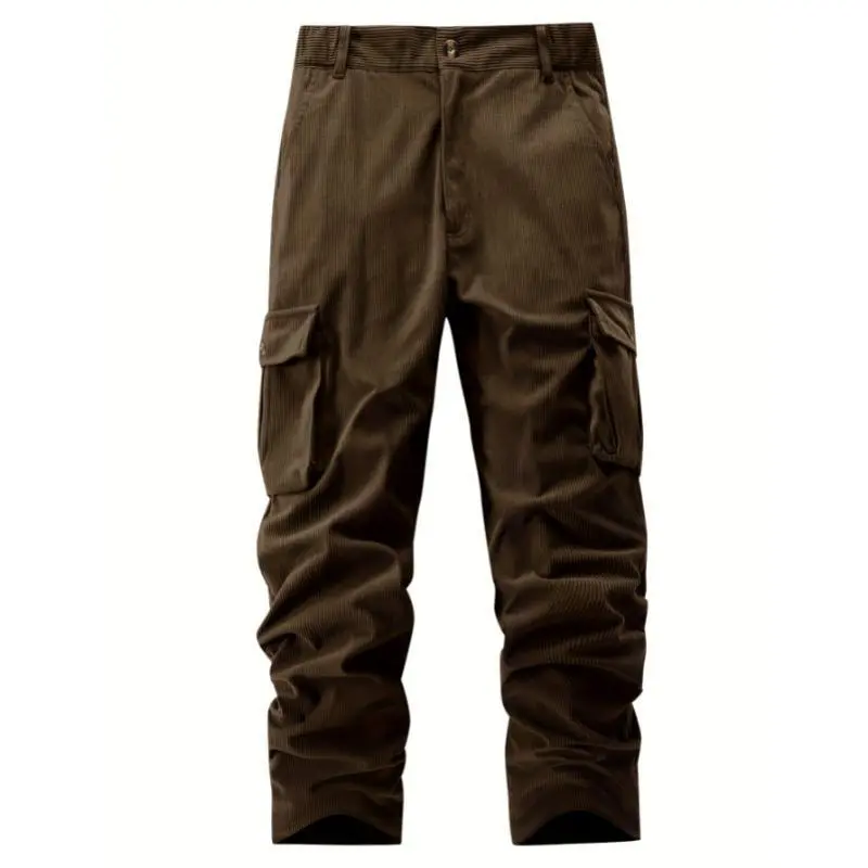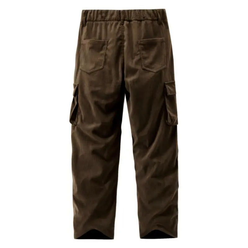Cozy Comfort] Men's Brown Corduroy Cargo Pants with 3D Pockets - Casual, Breathable & Comfortable Polyester Woven Trousers for Casual Attire, Mid-Rise, Loose Fit, Ideal for Fall/Winter, Everyday Comfort Pants|Relaxed Fit Pants|Woven Fabric
