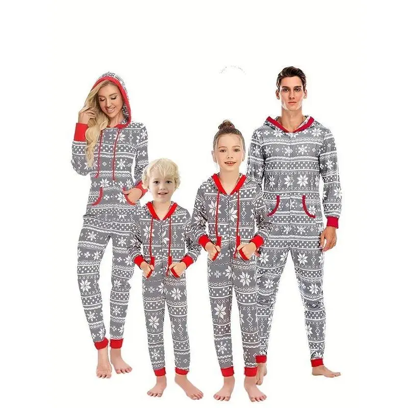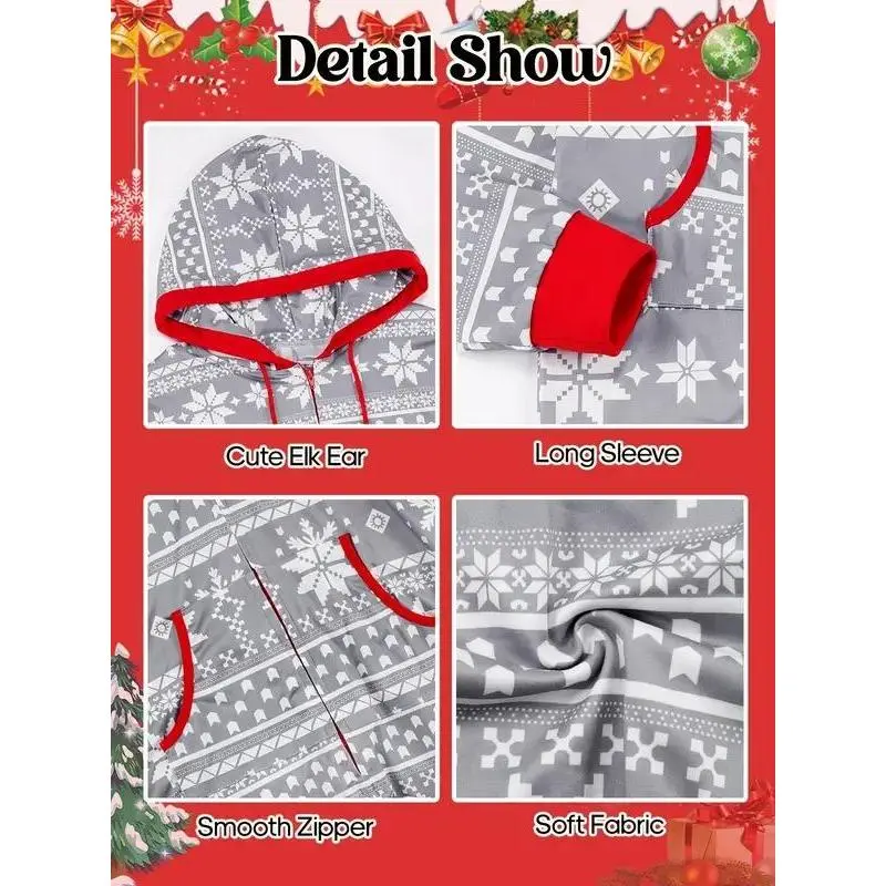 Tops Composition: 95% Cotton, 5% Spandex Bottoms Composition: 95% Cotton, 5% Polyester Father, Mother, Child, Christmas-themed One Piece outfits for couples and kids. Soft, fashionable hooded onesies for adults and children featuring cute long sleeves with elk, reindeer, and snowflake designs, perfect for parties, holidays, and festivals. The neckline is hooded, and the style is festive. Suitable for all genders and ages, these outfits are ideal for fall and winter seasons, accommodating various weather conditions like snow, sun, wind, rain, and fog. Dad Mom Child Christmas One Piece Clothes Couple Kids Winter Soft Fashion Hooded Onesie Adult Women Men Children Cute Long Sleeve Xmas Elk Reindeer Snowflake Print Outfit for Party Holiday Vacation Festival, for Outdoor