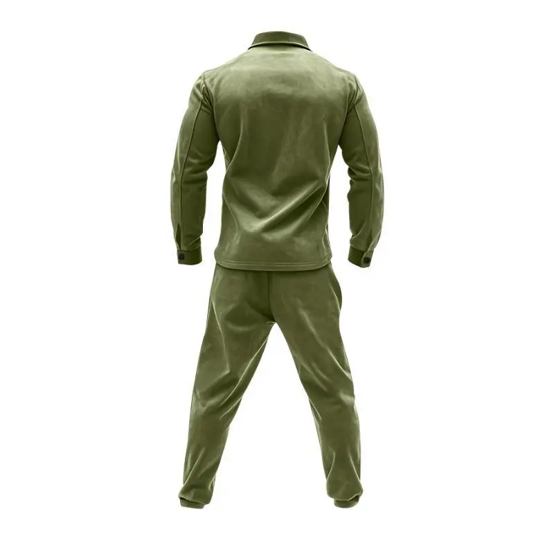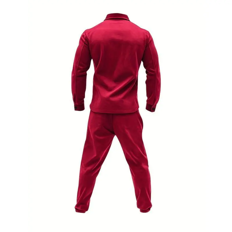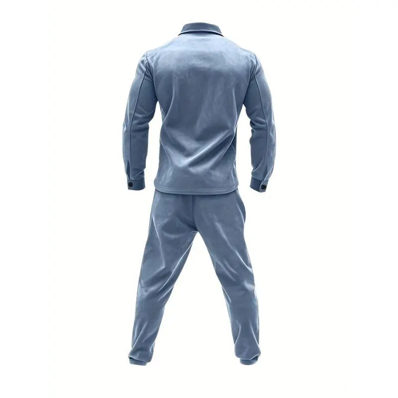 2pcs Men'S Casual Solid Color Sweatsuit Set, Polyester Knit Fabric with Slight Stretch, Regular Fit, with Lapel Collar, Button Details, for Spring/Fall - Fashionable American Style Workwear Jacket and Pants Combo