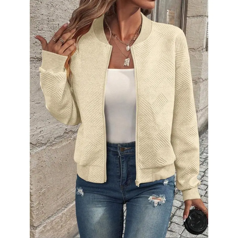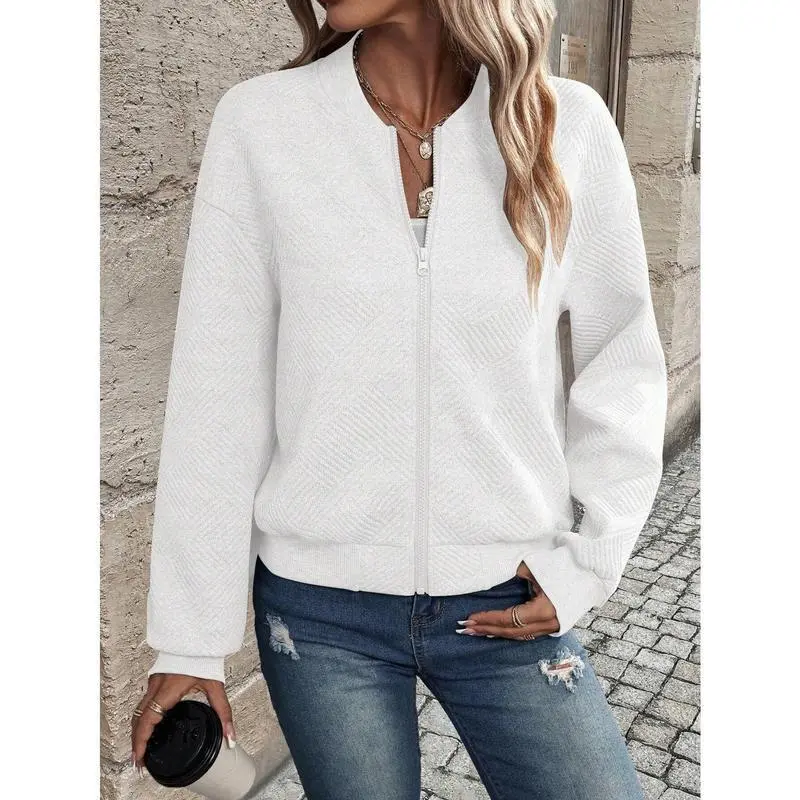 2025 autumn and winter new solid color zipper jacket baseball collar casual coat women