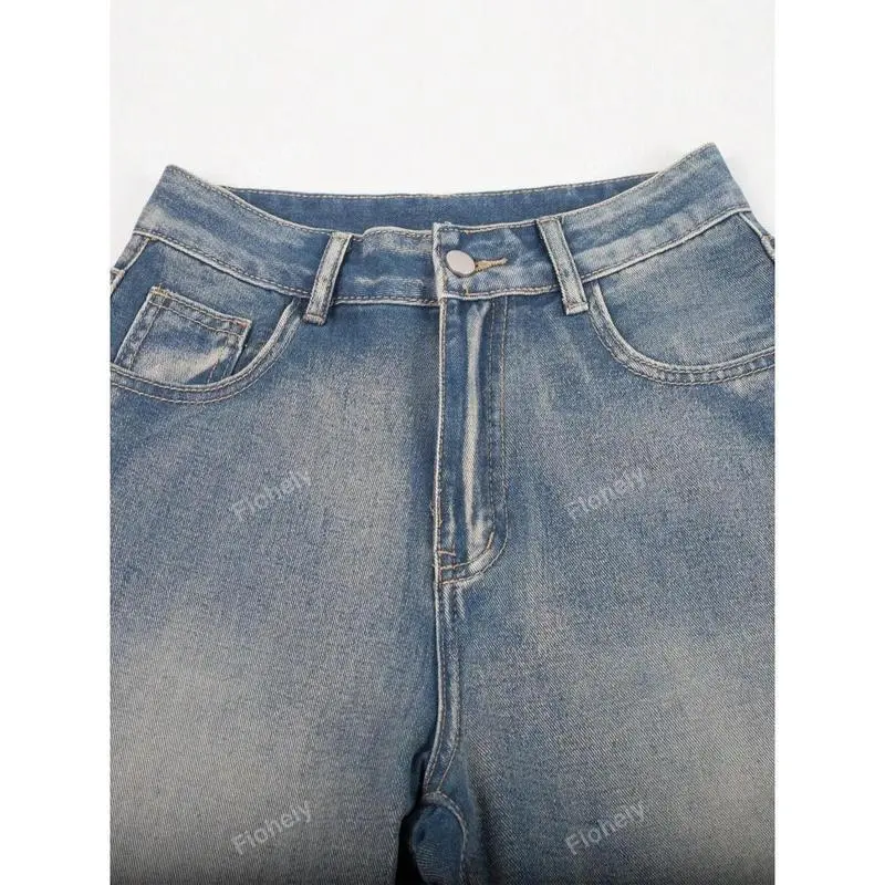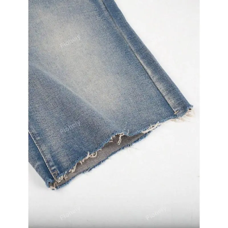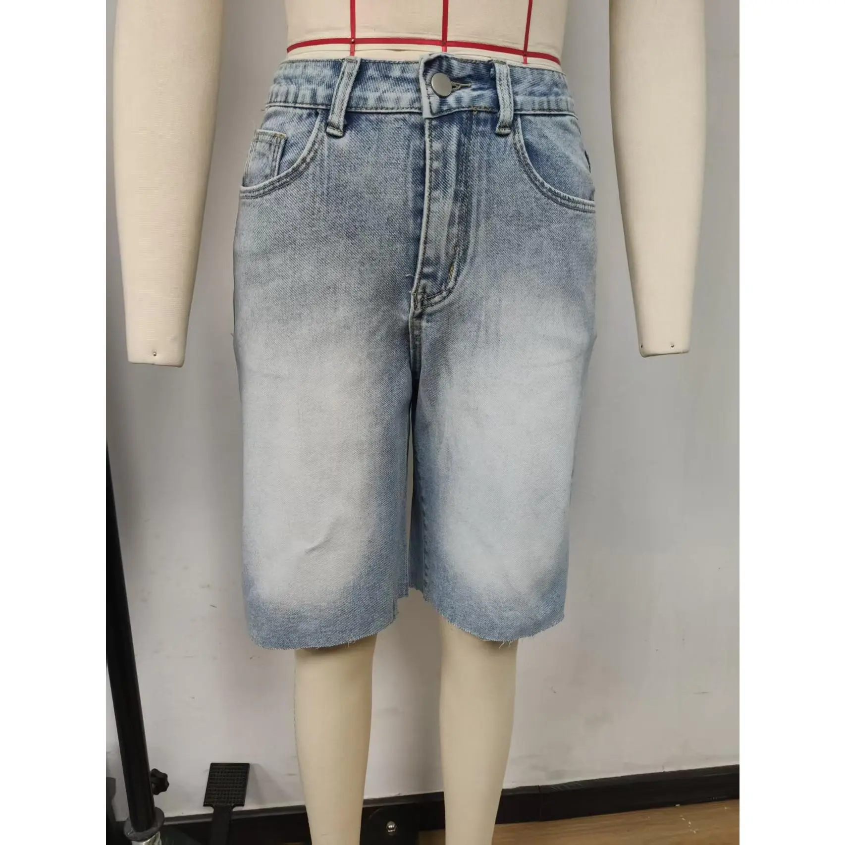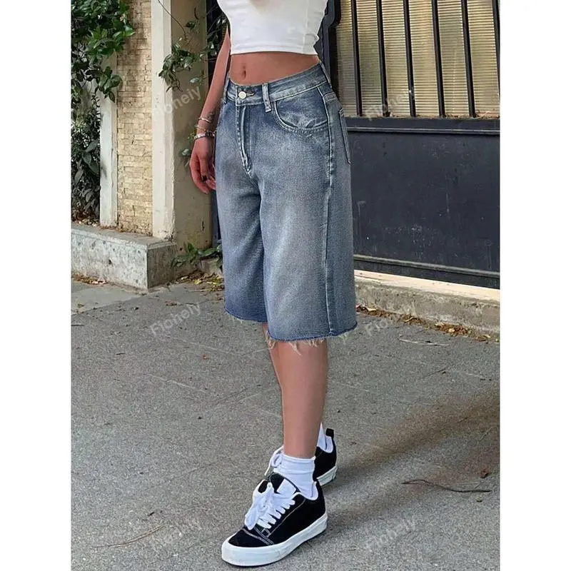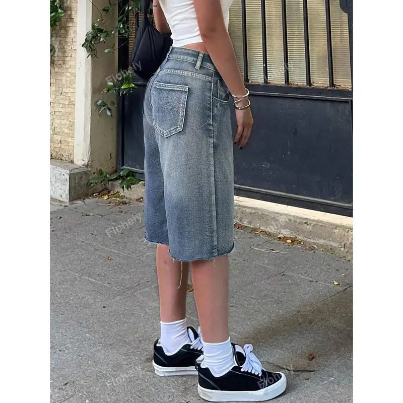 Y2KVintageSlantPocketFringeHemWideLegBermudaJeansDenimJortsCasualShortsBottomsFabric
