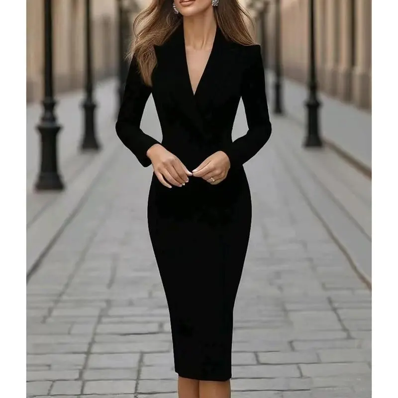 Women'sWhiteDouble-BreastedBlazerMidiDress