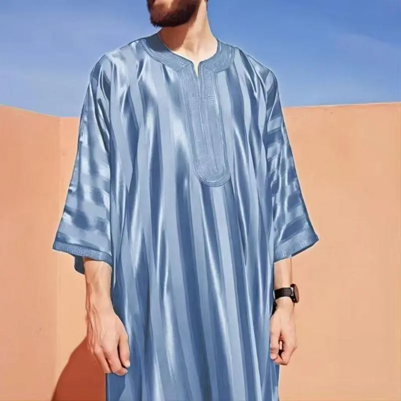 Experience timeless elegance with our premium handcrafted gandoura crafted in Morocco from luxurious Gabardine fabric.Designed to be cool to the touch and incredibly comfortable, this exquisite piece from Al Ghuraba will elevate your wardrobe. Made in Morocco Open left side pocket for easy access to pants or inner clothing. Model: Size Large Weight: 170 lbs. Machine wash cold (but it is recommended to hand wash only with cold water) Tumble dry low. Product must be shipped back in original condition with shipping charged by the customer for a returns/refunds.