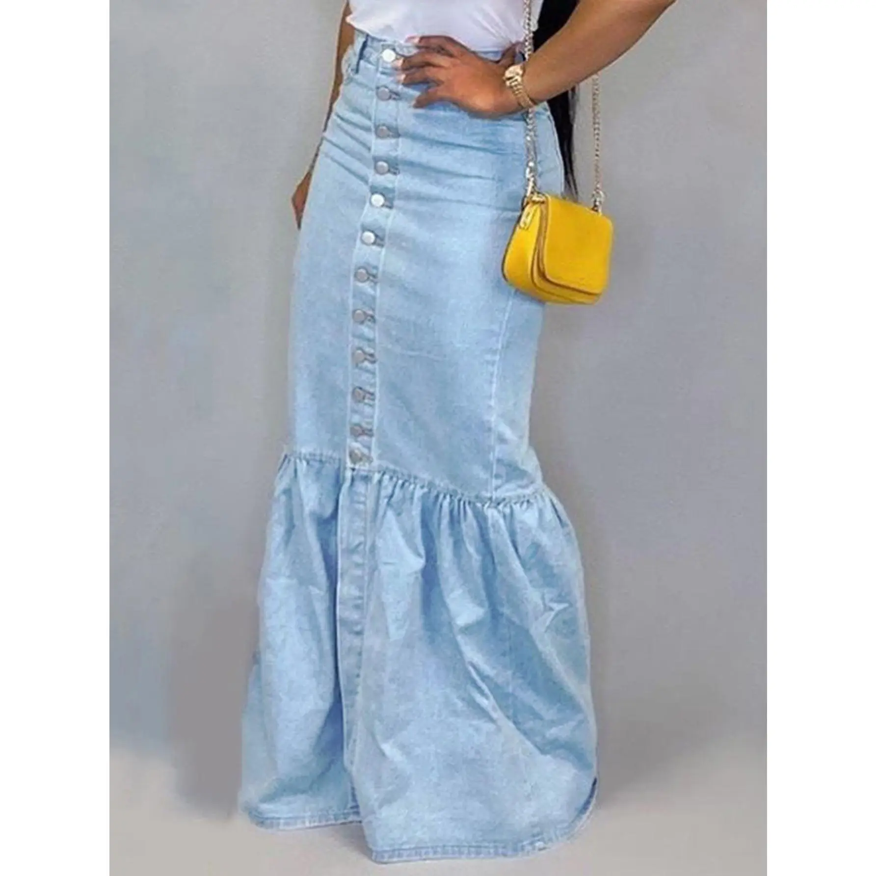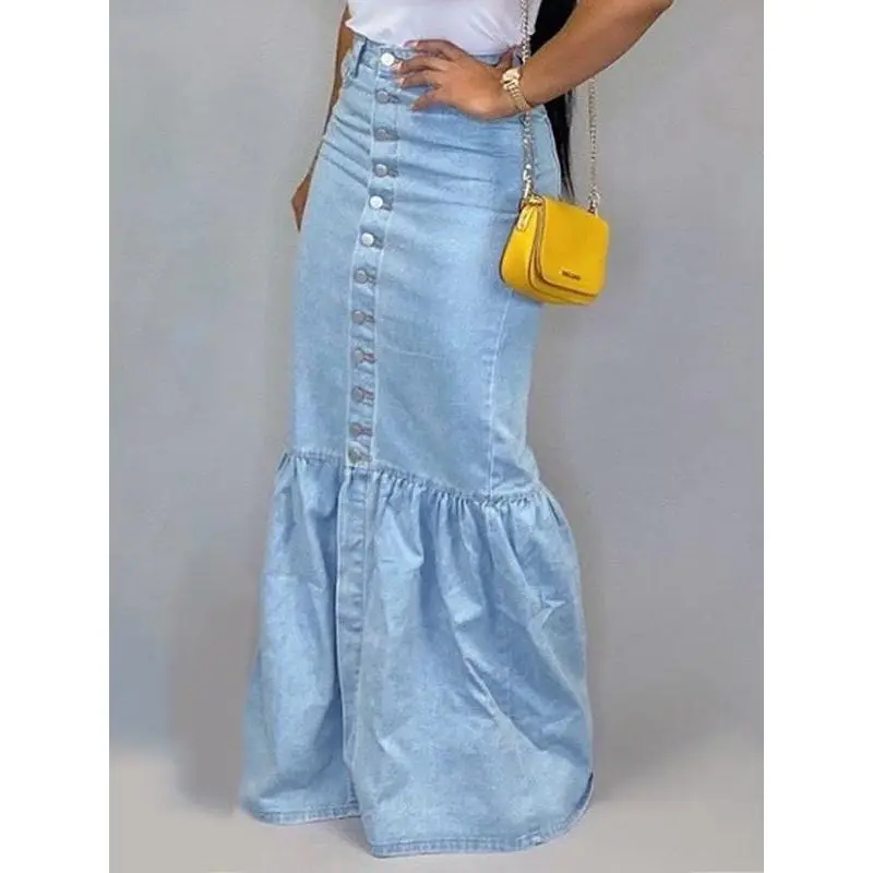 2025newstylestretchdenimhalfskirt,longskirt,fishtailskirtWomenswearBottomCasualMaxi