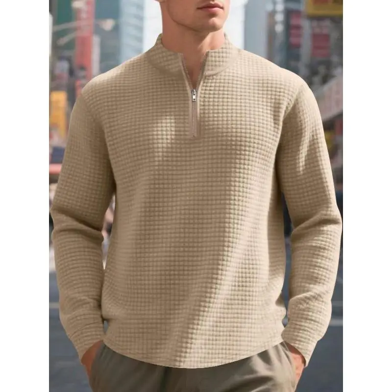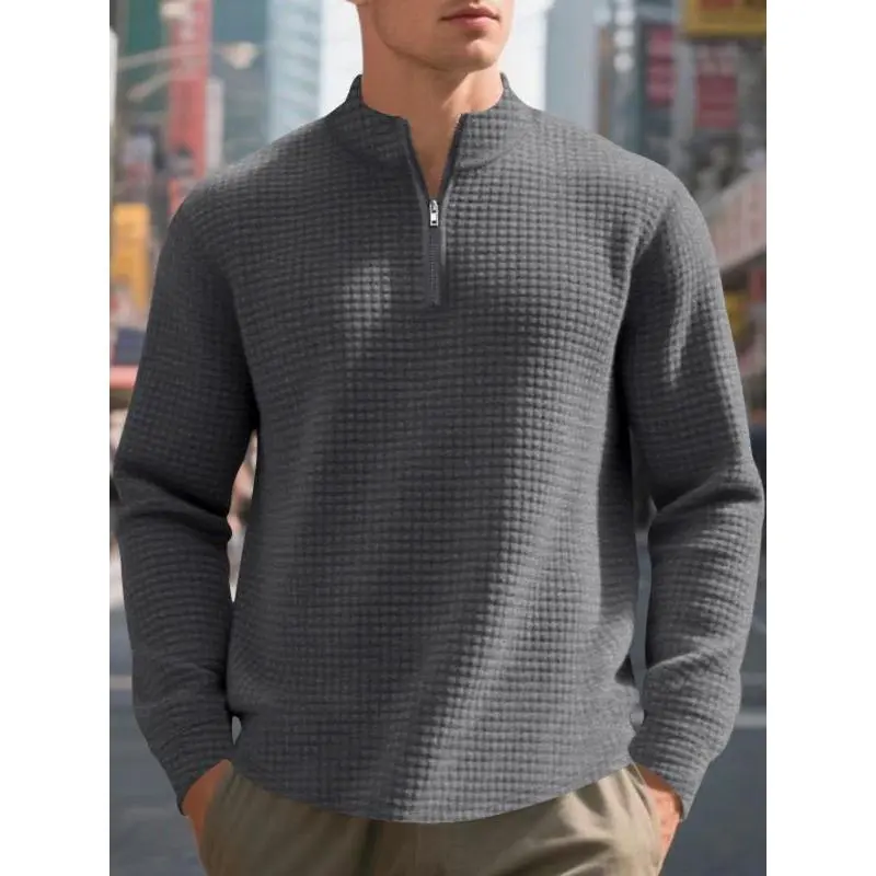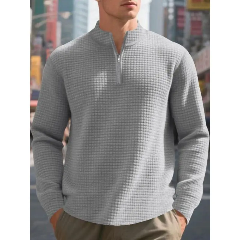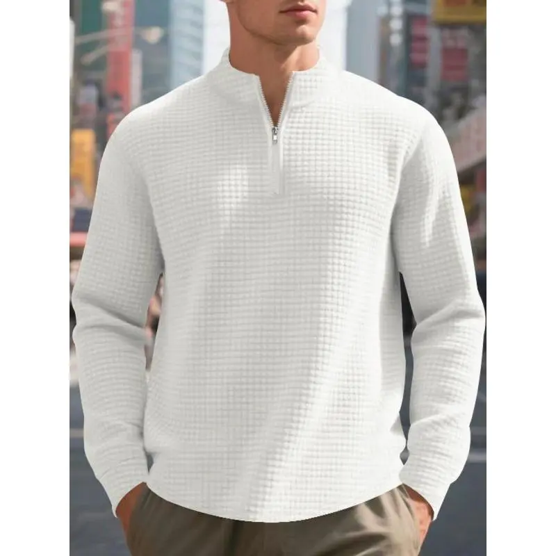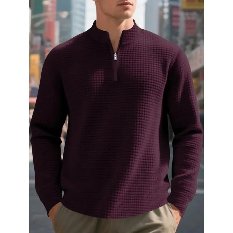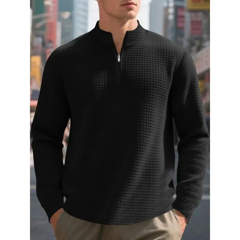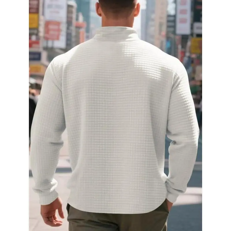 Men's Casual Loose-Fit Jacquard Pullover Sweatshirt, Stand Collar Half-Zipper Design, Perfect for Fall & Winter Seasons