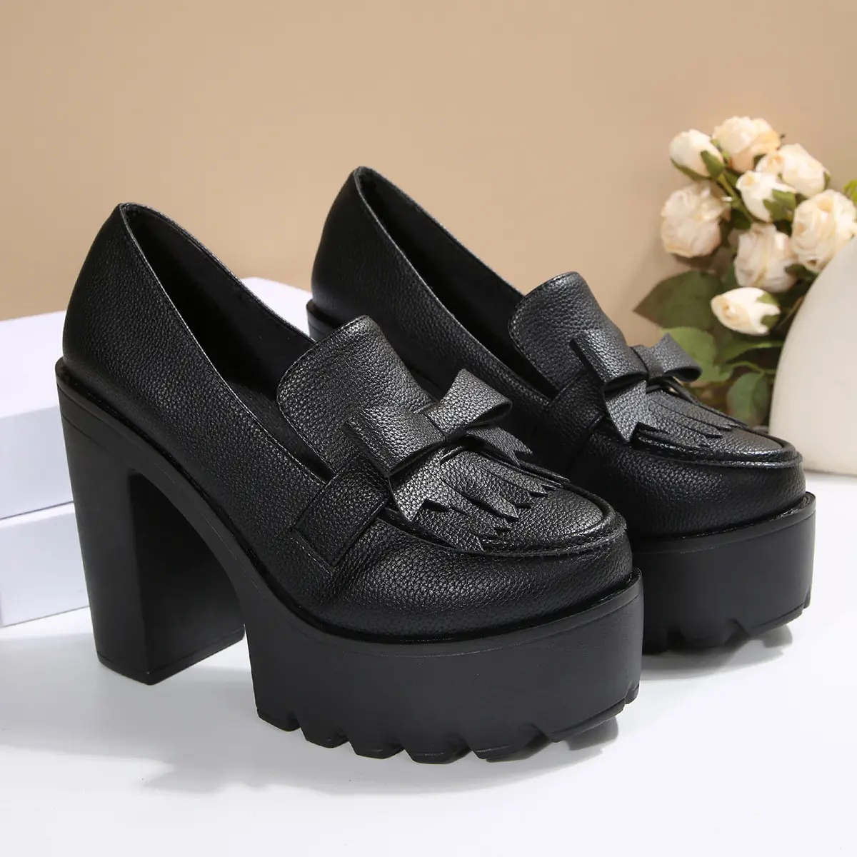 ��Height Boost��: Featuring a platform and high heel design, these shoes give you a noticeable height increase for a confident look. ��Durable Materials��: Crafted from PU leather with a rubber sole, ensuring longevity and resistance to wear during daily use. ��Seasonal Versatility��: Perfect for both Spring and Fall, these shoes transition effortlessly with seasonal wardrobes. ��Unique Cut��: Less than ankle height, this shoe provides a distinctive silhouette that complements various outfits. ��Easy Slip-On��: Designed for convenience, these loafers allow for quick wear while maintaining a polished appearance.
