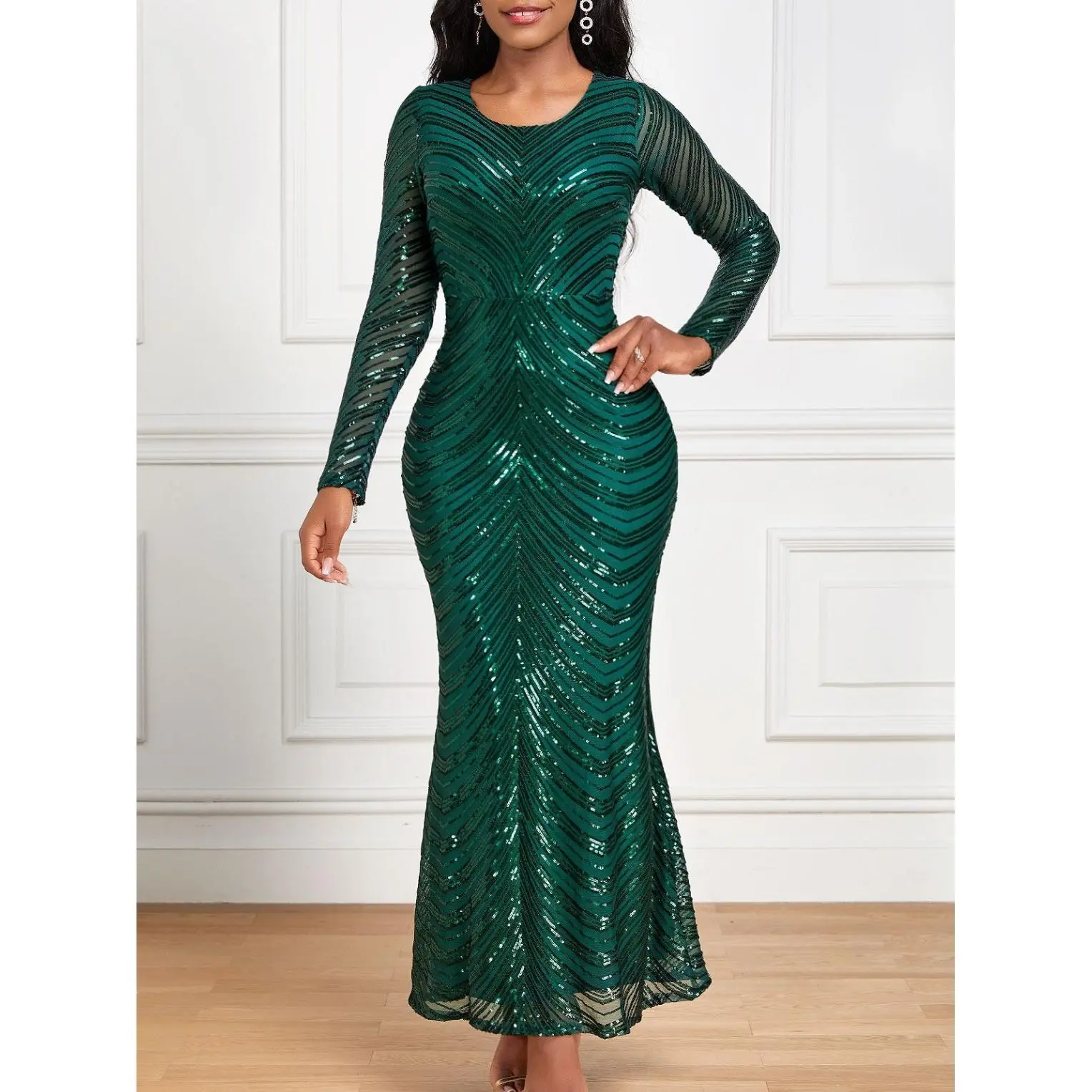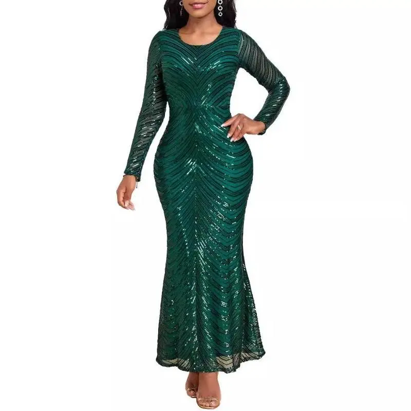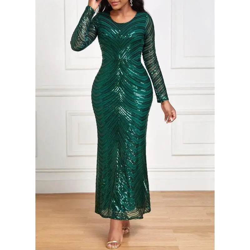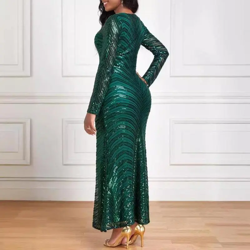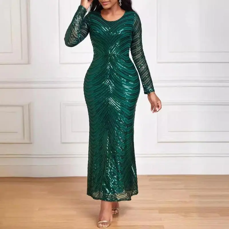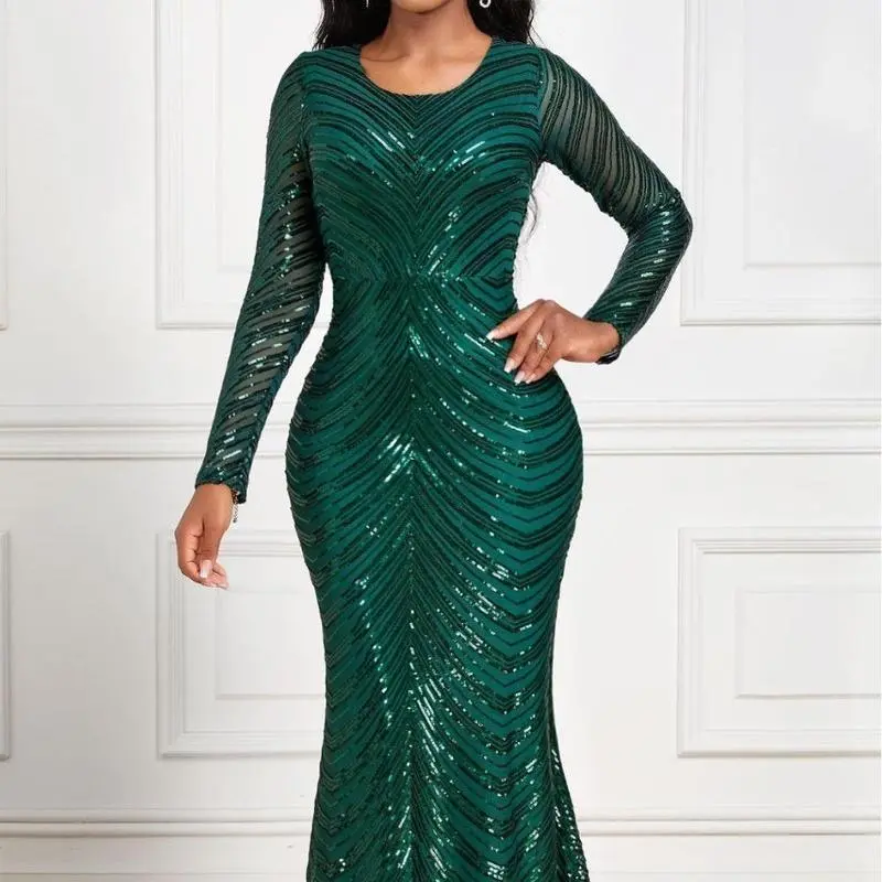 LongSleeveSequinFormalDress,Floor-Length,SlimFitwithComfortableLining