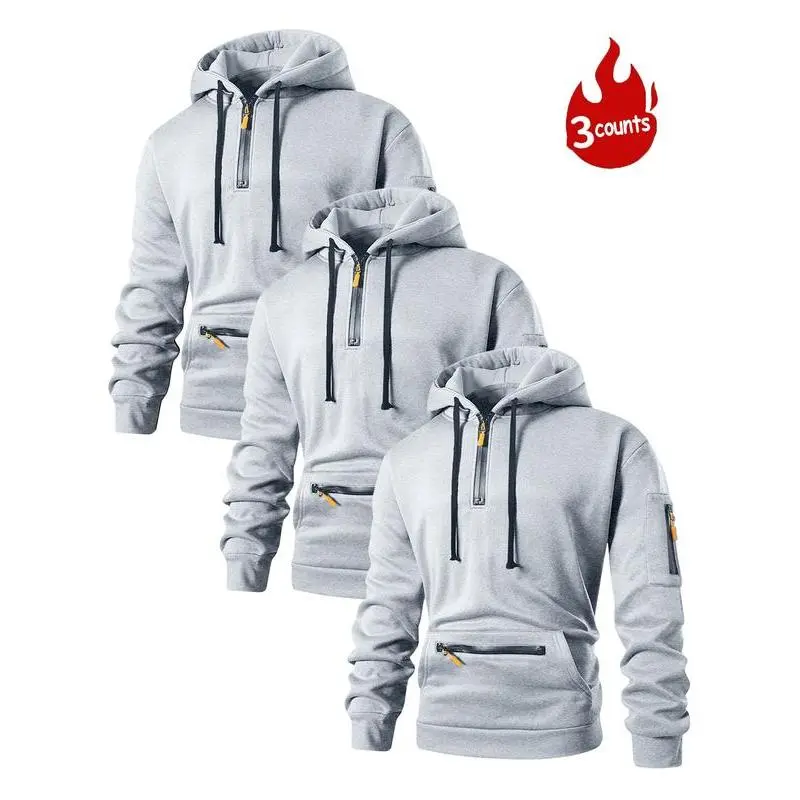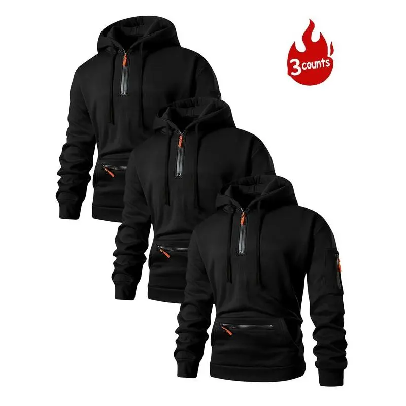 ��Zippered Pockets��: Featuring unique zippered pockets for added functionality while enhancing the overall aesthetic of the sweatshirt. ��Half-Zip Style��: The half-zip design allows for adjustable ventilation, providing flexibility in wear across different conditions. ��Multiple Color Options��: Available in various colors, allowing for personalization and the ability to match different outfits effortlessly. ��Thick Fabric��: Crafted from thick fabric, this sweatshirt offers enhanced warmth and is suitable for fall and winter wear. ��Loose Fit��: The loose fit ensures ease of movement, making it suitable for both leisure activities and everyday wear.