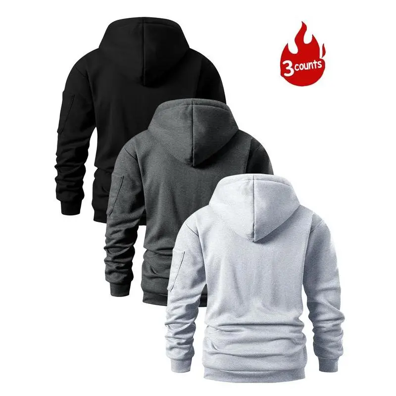 Men's Hooded Sweatshirt Set, Half-Zip Design, Kangaroo Pocket & Zipper Sleeves, Casual Fall Winter Wear, Loose Fit, Multiple Colors Available