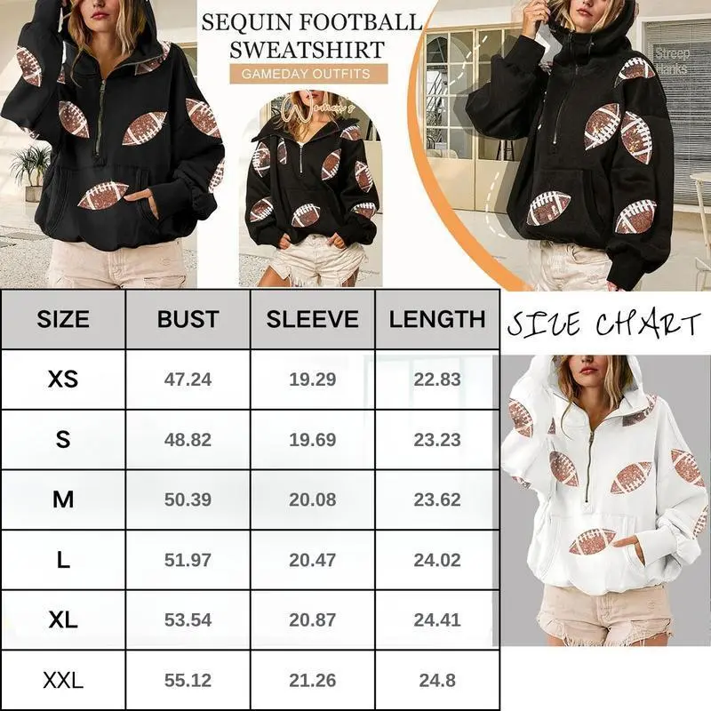 WomensGameDaySweatshirtsFootballSequinHoodiesTailgateOutfitsLongSleeveZipperSweaterswithPocket