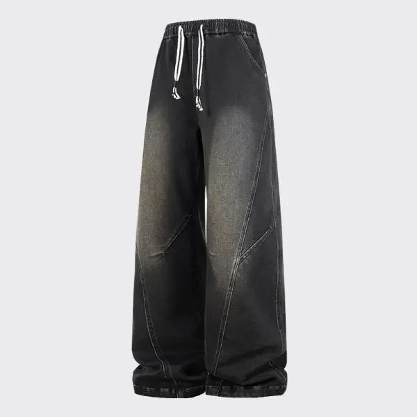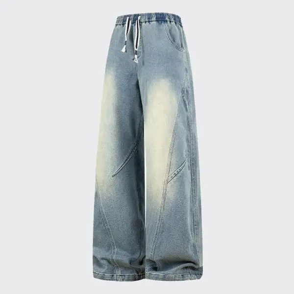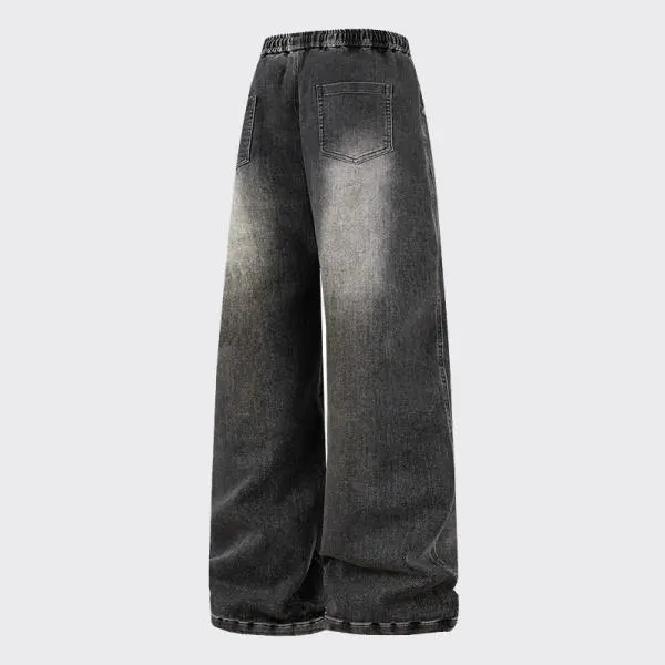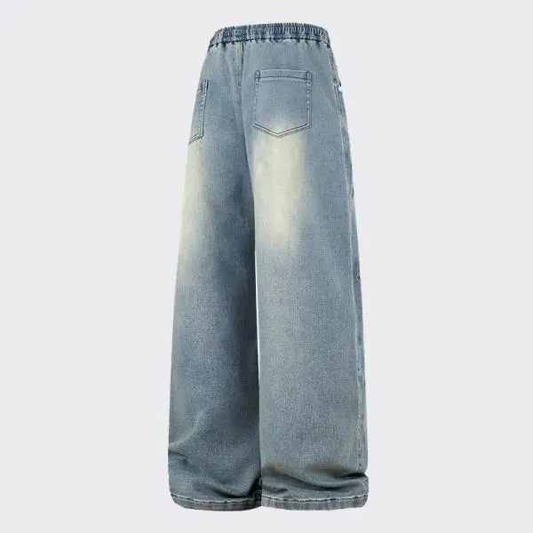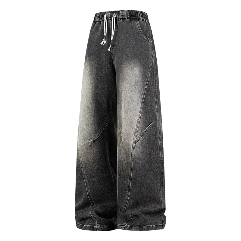 New Heavyweight Straight Loose Fit Men's Jeans with Elastic Drawstring Waistband Stylish Wide Leg Pants