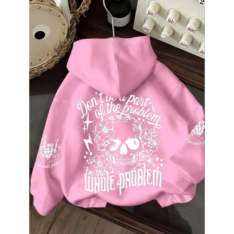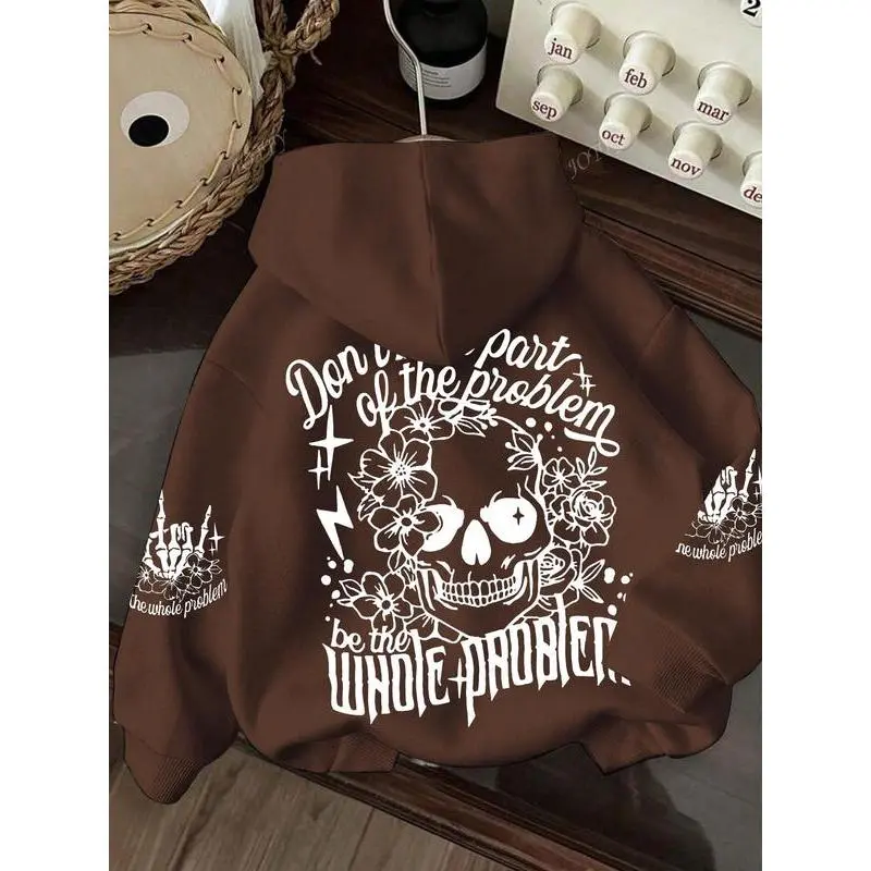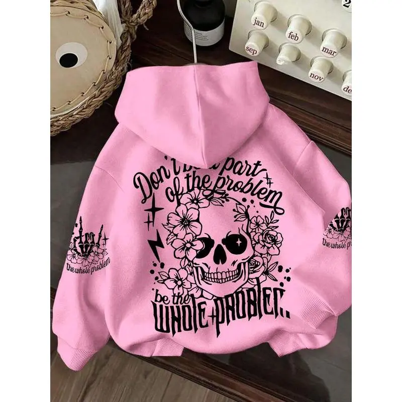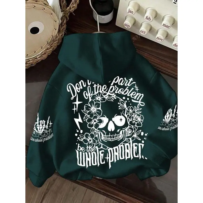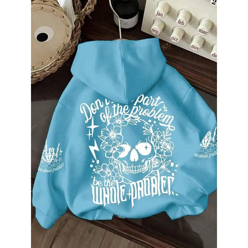 Floral Halloween Skull Hoodie, Loose-Fit Korean Style Pullover, Fall & Winter Thick Fabric, Multiple Colors Available