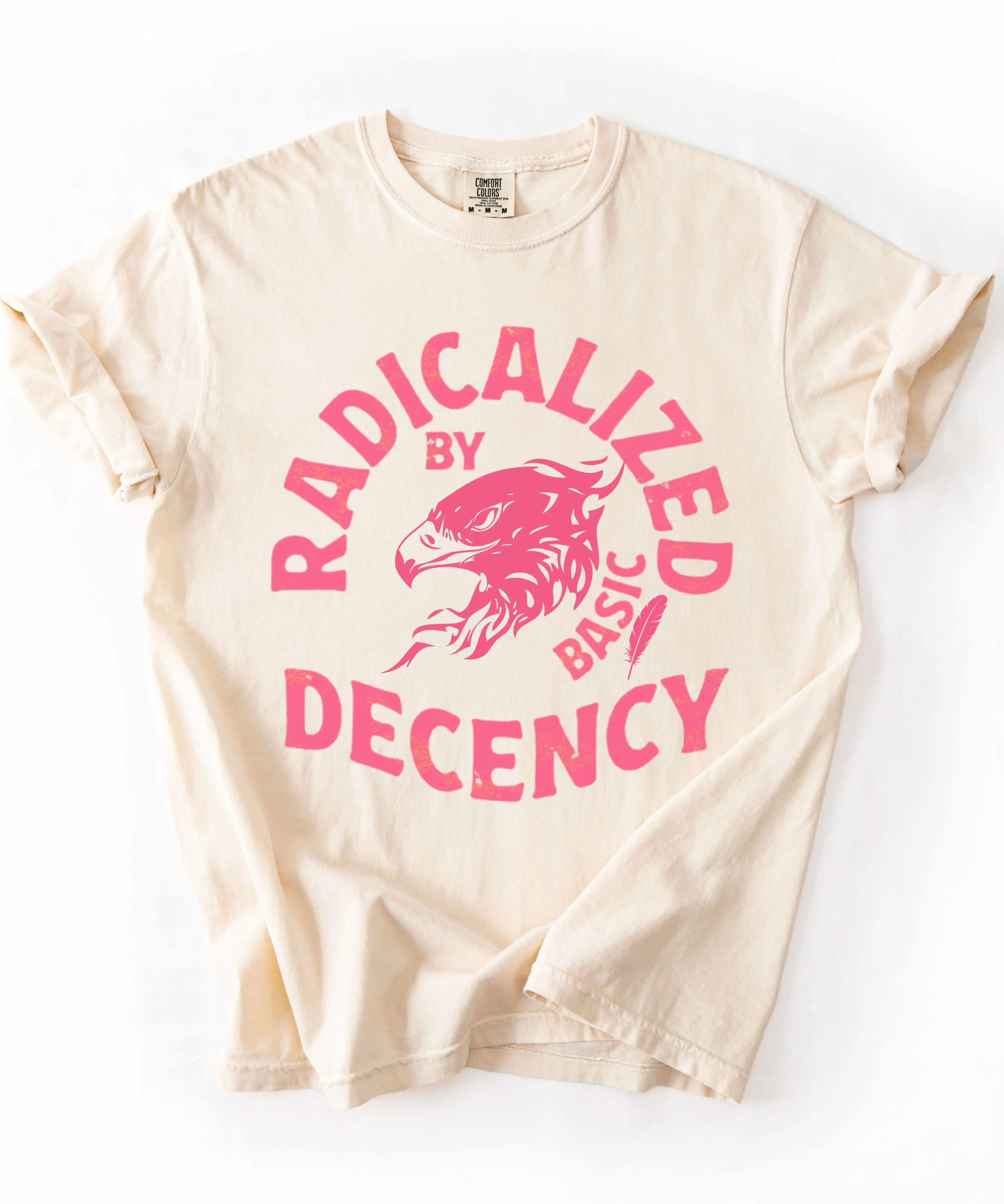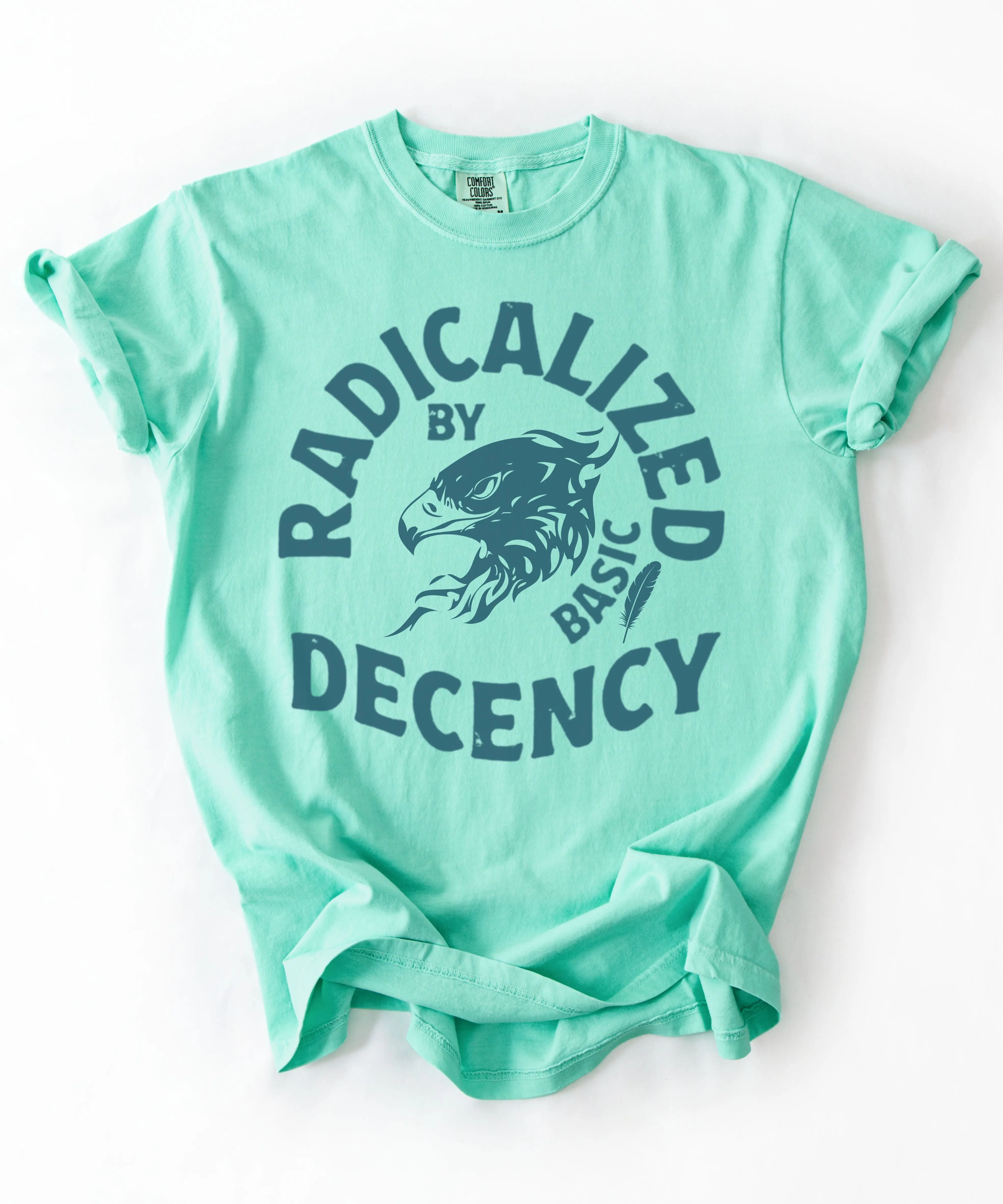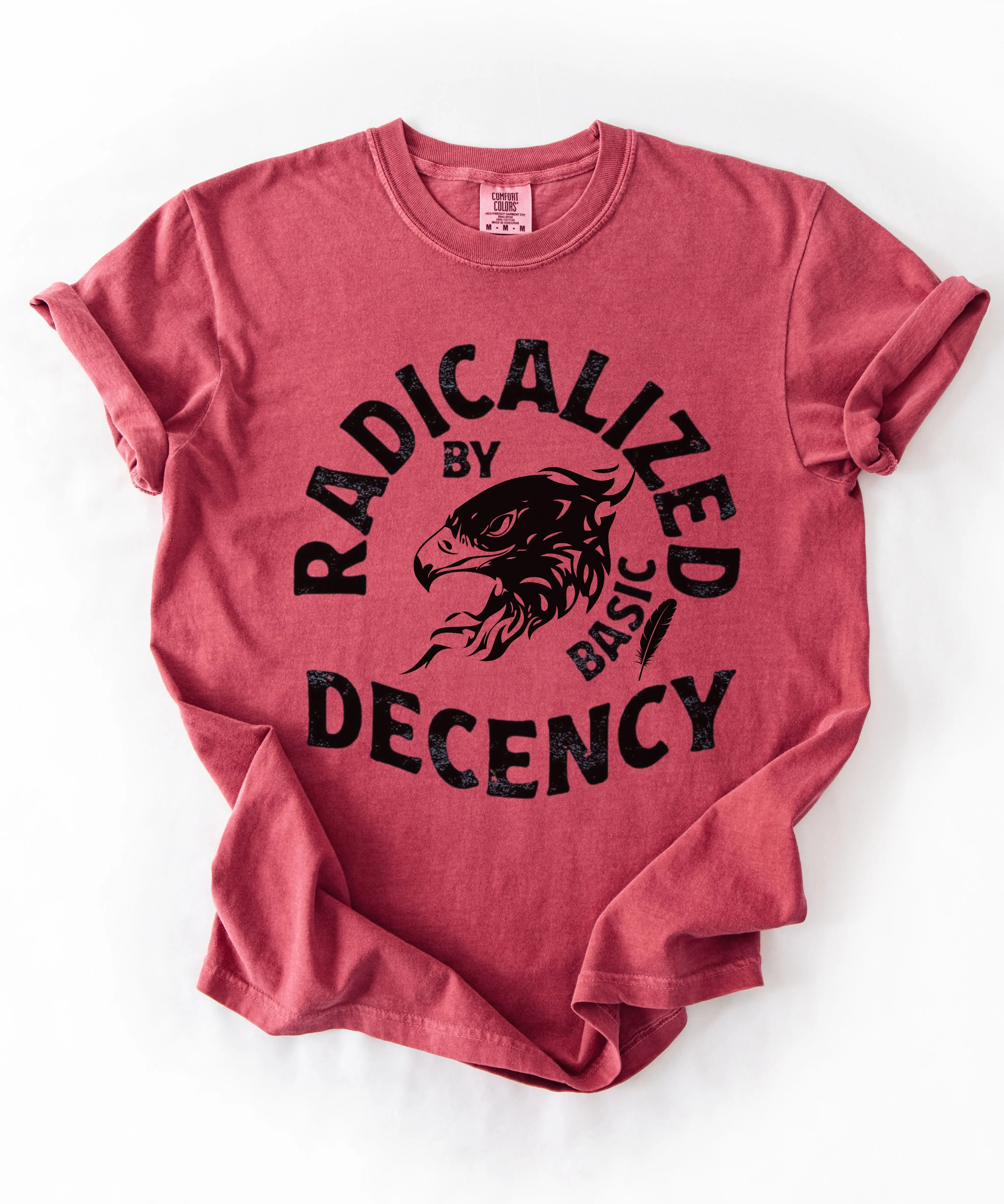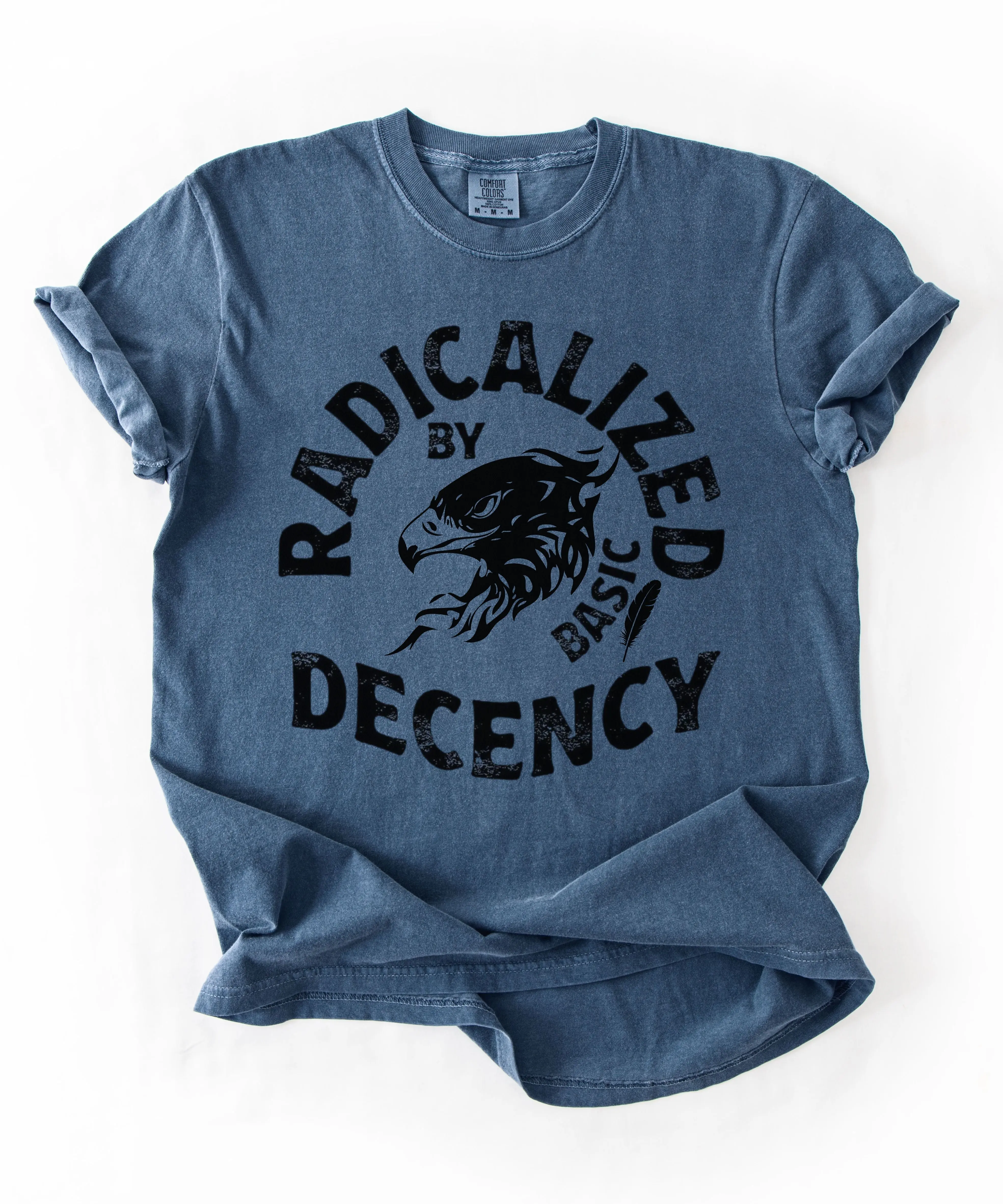 This “Radicalized by Basic Decency” graphic tee is a bold yet grounded statement for those who stand for fairness, dignity, and accountability. Featuring a distressed vintage-style eagle design, this shirt blends classic Americana aesthetics with modern protest energy.