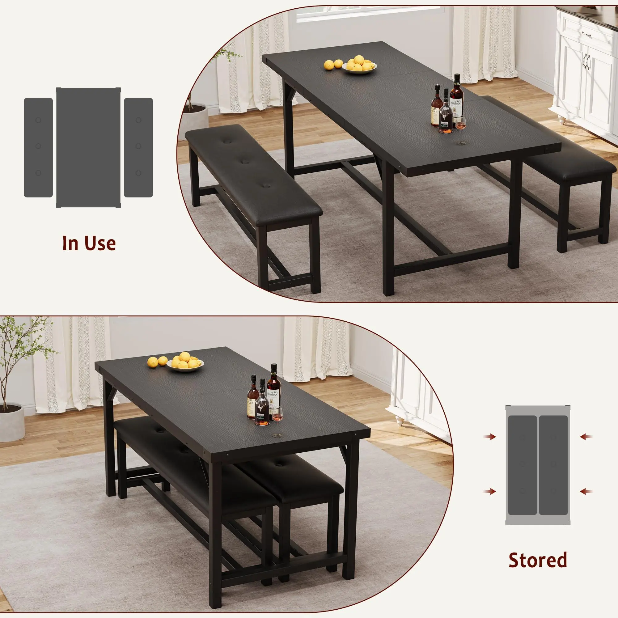 ·3. Expanded Dining System: Space-efficient design expands in moments when needed, Benches slide flush under table, Perfect footprint for small kitchens and dining areas Smooth extension mechanism - no tools required Maintains clean lines in both compact and expanded modes, Engineered specifically for space-challenged homes without compromising on style or comfort. Using this extendable dining table set for 6 perfect balance between everyday practicality and entertaining flexibility.