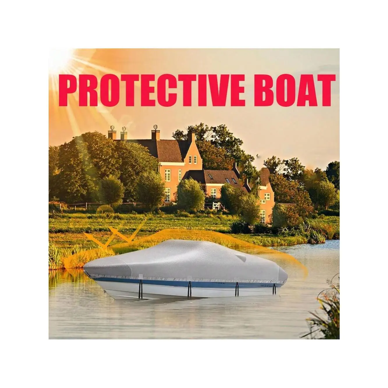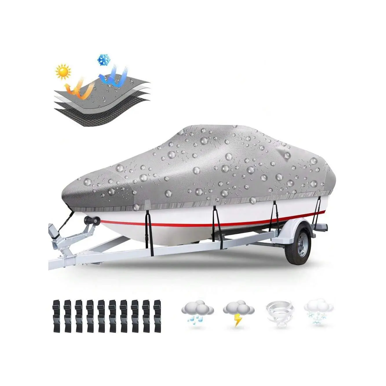 ✔[All-round protection]The boat tarp features adjustable high-density straps and reinforced quick-release windproof buckles. The all-around bottom design provides a custom 360-degree fit for your boat, keeping the cover securely in place to prevent it from being blown away.