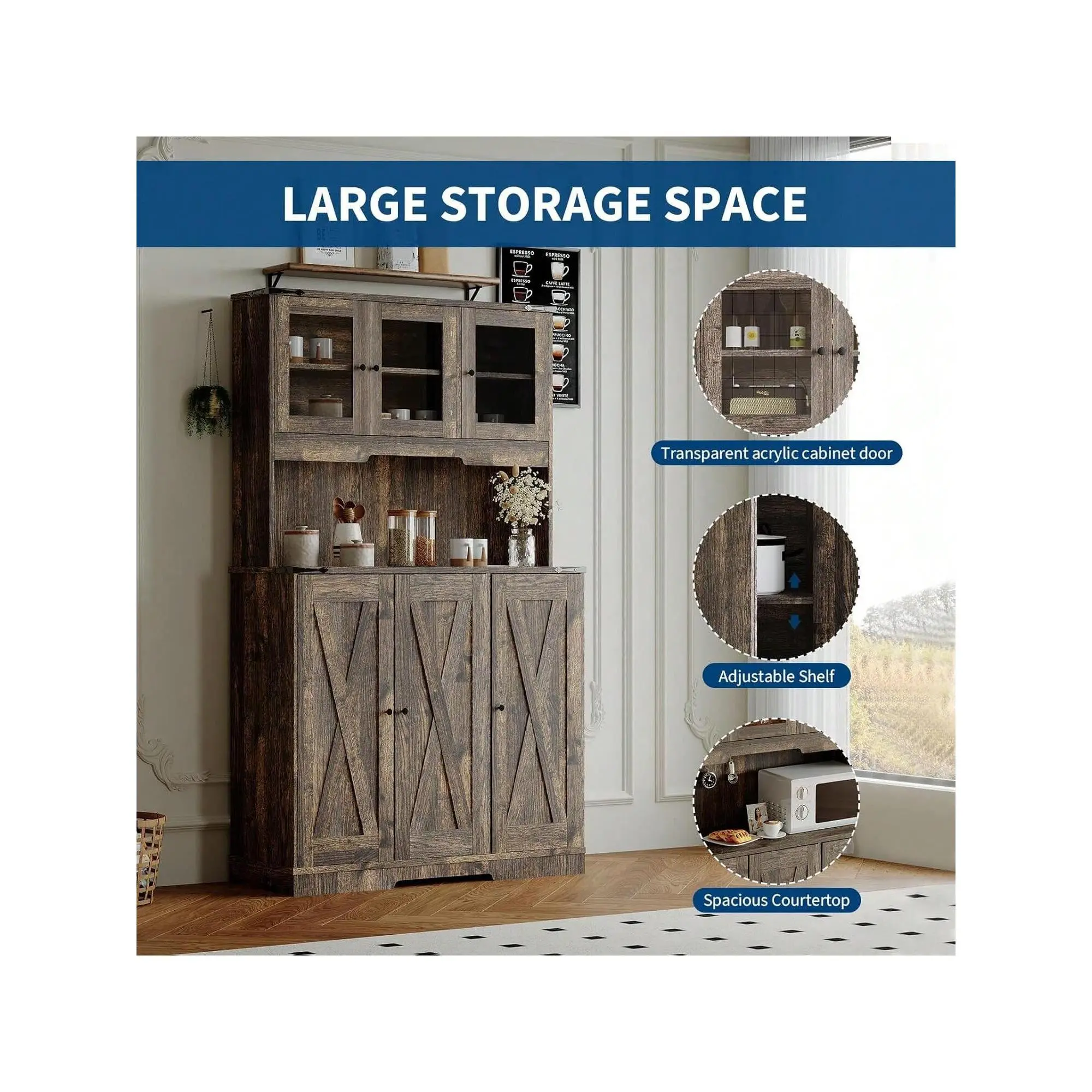 [Easy Assembly + Technical Support ]: The Kitchen Hutch cabinet accessories come with pre-attached labels and illustrated instructions, making it easier for you to complete the assembly more quickly. If you encounter any problems, we will provide you with technical guidance and solve installation or usage issues.