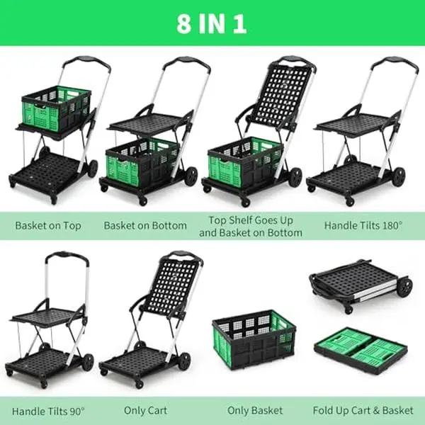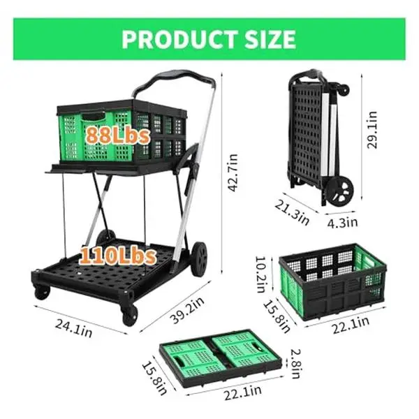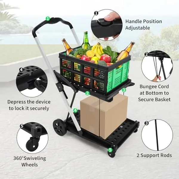 ·Versatile Utility for Everyday Needs: More than just a folding shopping cart, it's ideal for carrying groceries, supplies, or laundry. Perfect for daily errands, travel, or warehouse work—this collapsible utility cart adapts to all your storage and mobility needs