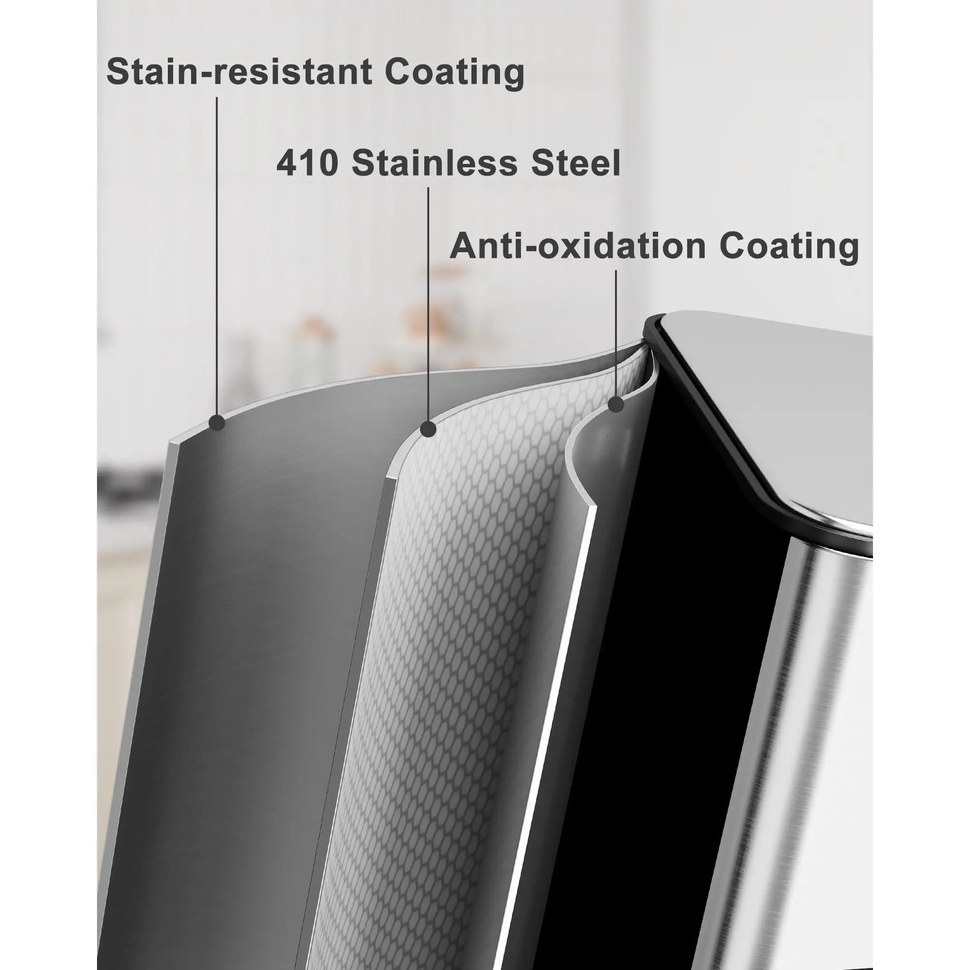 Easy to Clean: Made from high-quality stainless steel, this trash can effectively resists fingerprints, keeping it looking pristine. The bottom seal prevents dirt from spreading, and the inner bucket can be easily removed for hassle-free cleaning, ensuring you can enjoy a tidy kitchen environment.