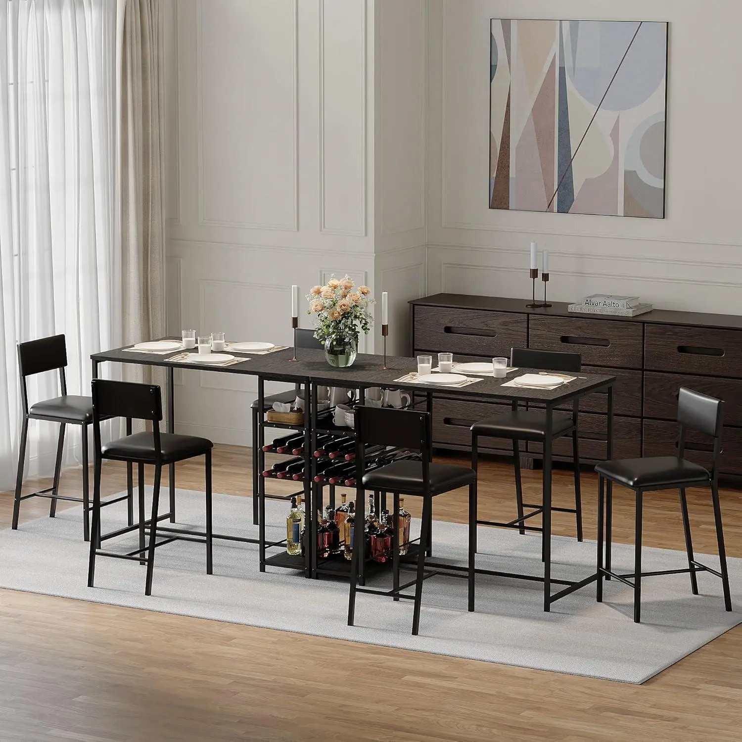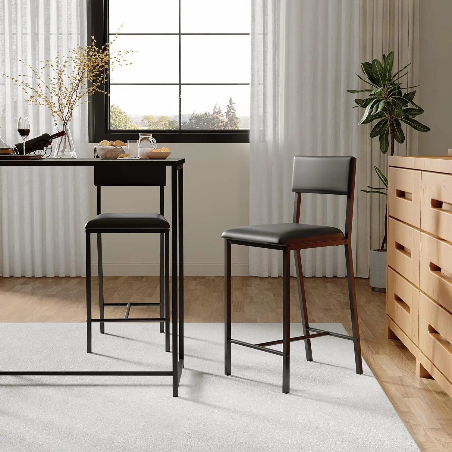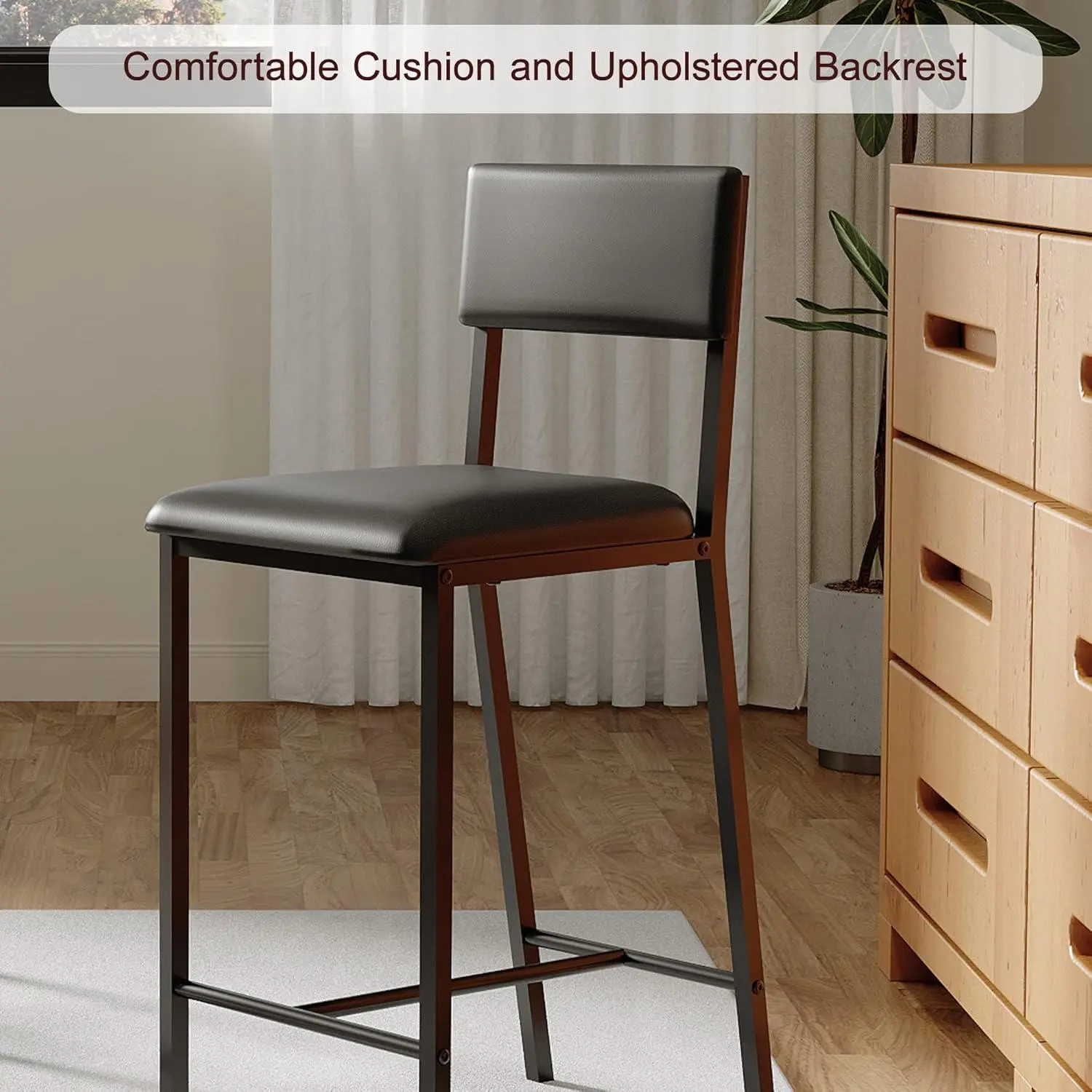 Sturdy Metal Frame Chairs - 330lbs Weight Capacity Built with durable H-frame metal legs and non-slip foot pads, these heavy-duty dining chairs securely support up to 330 pounds, perfect as bar height chairs or everyday kitchen seating.