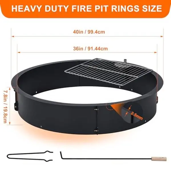 ·【Large Size Fire Ring】36 inches outside diameter. Acts as a protective round outdoor fire pit ring insert, helping to contain embers and flames safely within the ring, ideal for any outdoor wood burning activities.It can accommodate 5-7 people to sit around the fire pit for warmth or barbecue, giving you the best experience while camping or burning a campfire in the outdoors. We offer a 30-days replacement service. If you have any question, please connect us at any time.