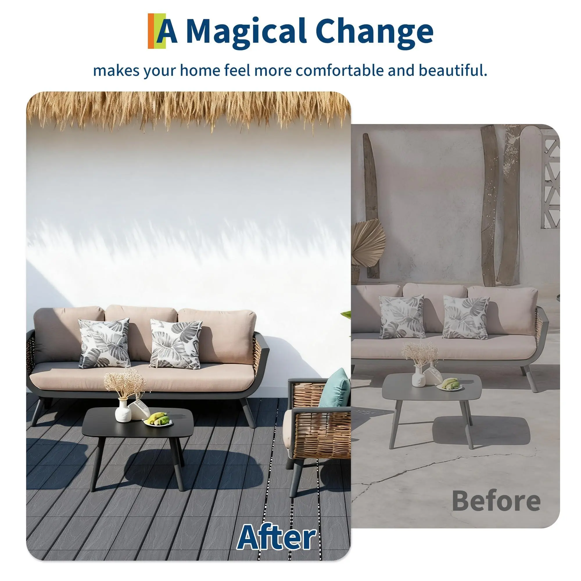 5. EASY MAINTENANCE & LONG-LASTING BEAUTY:Maintaining your beautiful deck is incredibly simple. The tiles require minimal upkeep - just sweep regularly or rinse with a hose to keep them clean. For enhanced protection and to maintain their elegant appearance over time, you can periodically treat them with wood oil or hard wax. This low-maintenance solution ensures your flooring stays beautiful and durable for years with minimal effort.
