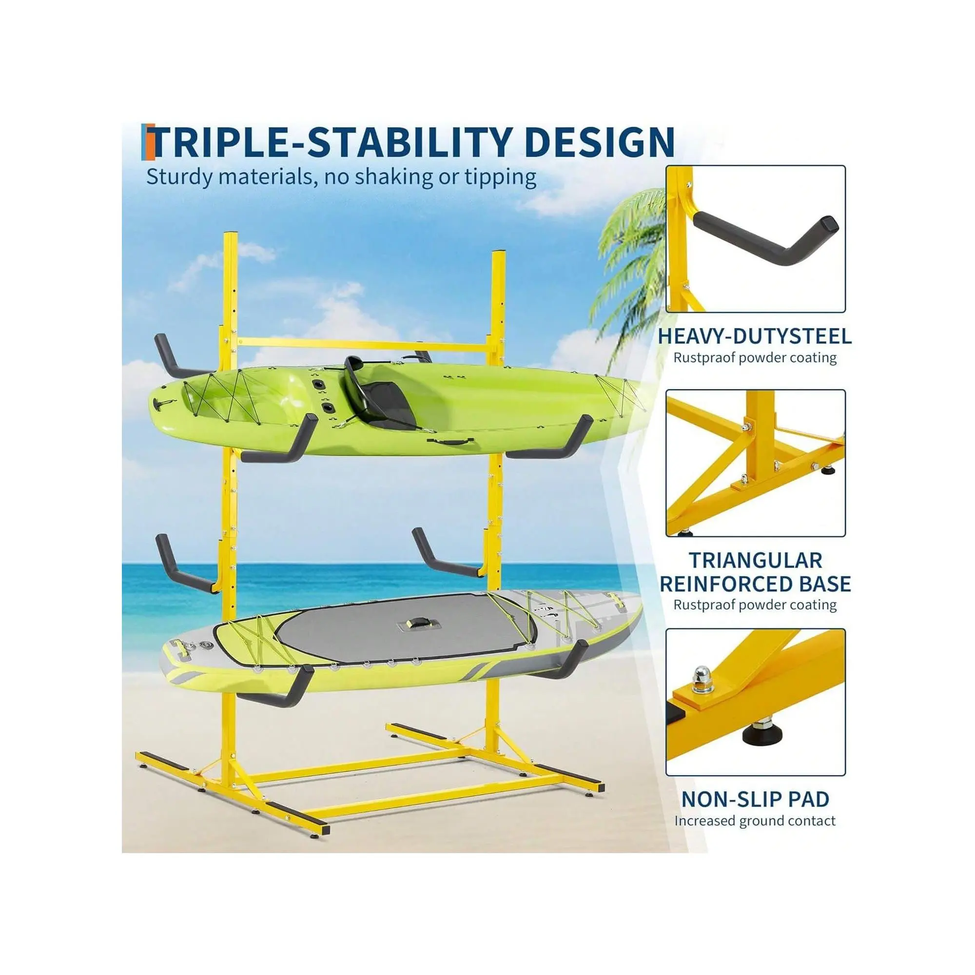Triple - Stability Free Standing Rack Design:Featuring a triangular reinforced base, heavy - duty steel with rustproof powder coating, and non - slip pads that increase ground contact, this kayak storage rack ensures sturdy performance without shaking or tipping, offering reliable stability for your kayaks.