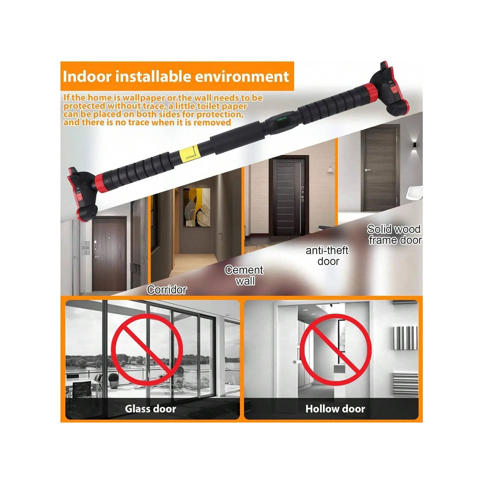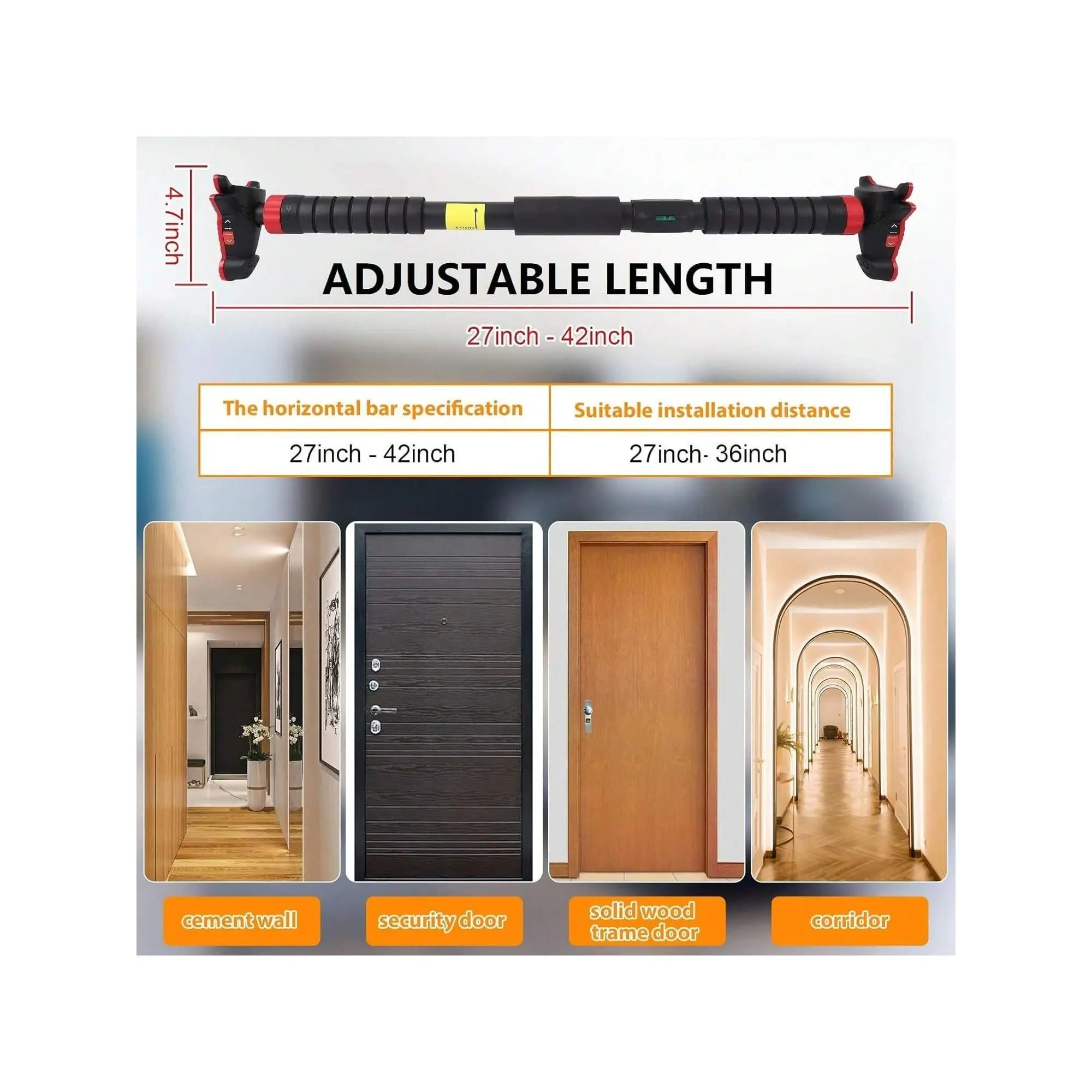 [Adjustable Width]Doorway Pull Up Bar can adjust the width and fits any standard door width from 27 inches to 42 inches. No screws, hole-free installation, no damage to the door, perfect protection for your door frame and walls. Suitable for most doorways, ideal for home, garage or office use.