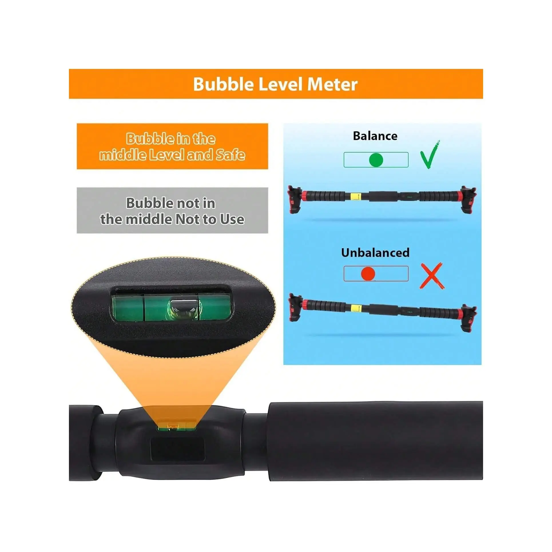 [Easy to install]The Chin Up Bar has a level, and the middle position of the bubble determines whether the pull-up bar is level. The anti-reverse design locking structure doubles the safety of the type, you just need to extend it to a comfortable length and height before use.