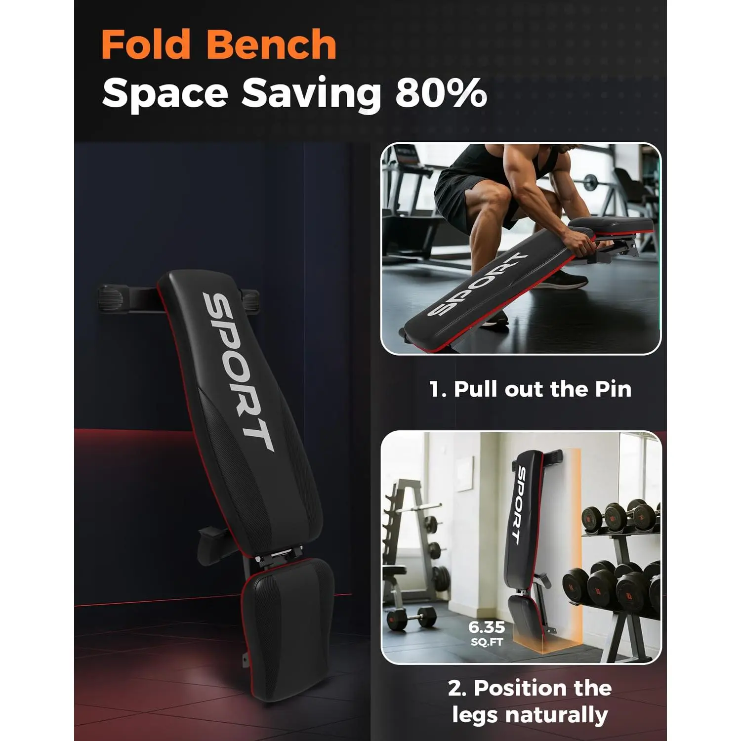 Fast Assembly & Space-Saving Folding: Clear, easy-to-follow instructions make setup a breeze—you can have your bench ready in just 30 minutes. When not in use, the bench folds up neatly to save space, perfect for home gym areas with limited room.