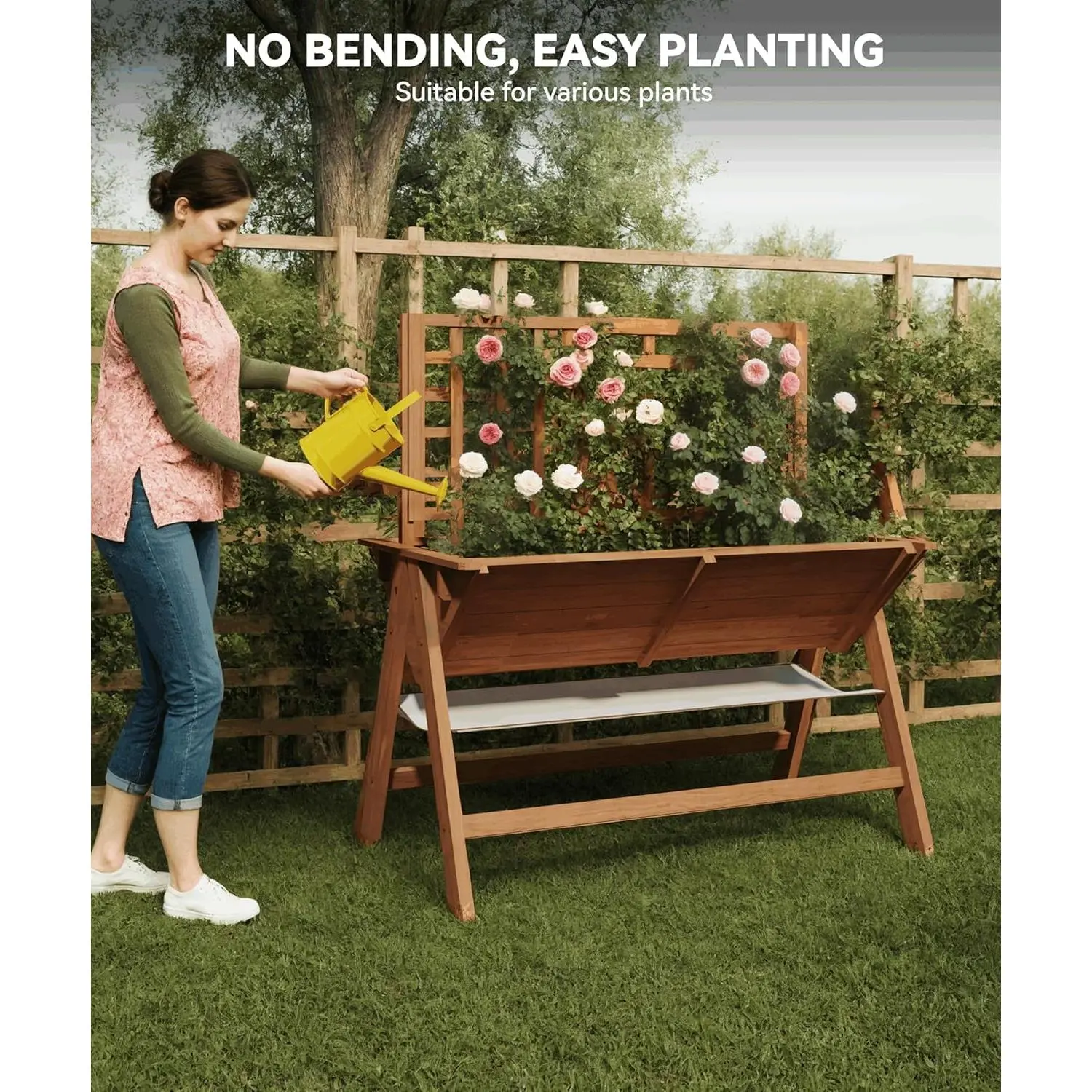 Dual-Function Trellis & Shelf: Integrated trellis supports climbing plants like cucumbers or beans, and serves as an extra storage shelf; includes free liner and waterproof Oxford fabric for a tidy garden.