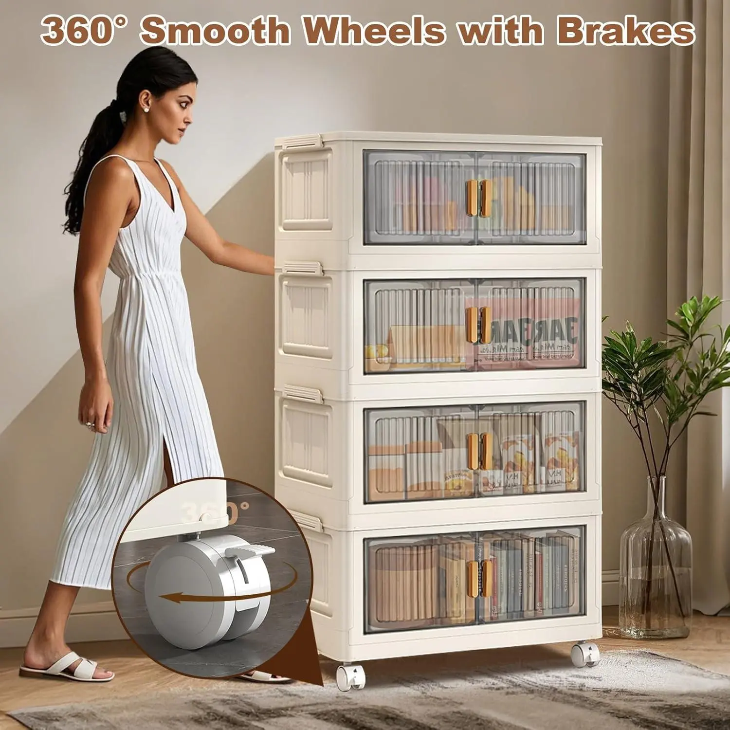 4 Tier Storage Bins with Lids Stackable Plastic Storage Drawers for Closet Home Office or Dorm Room with Rolling Wheels Boxes Cover Organiser Smooth