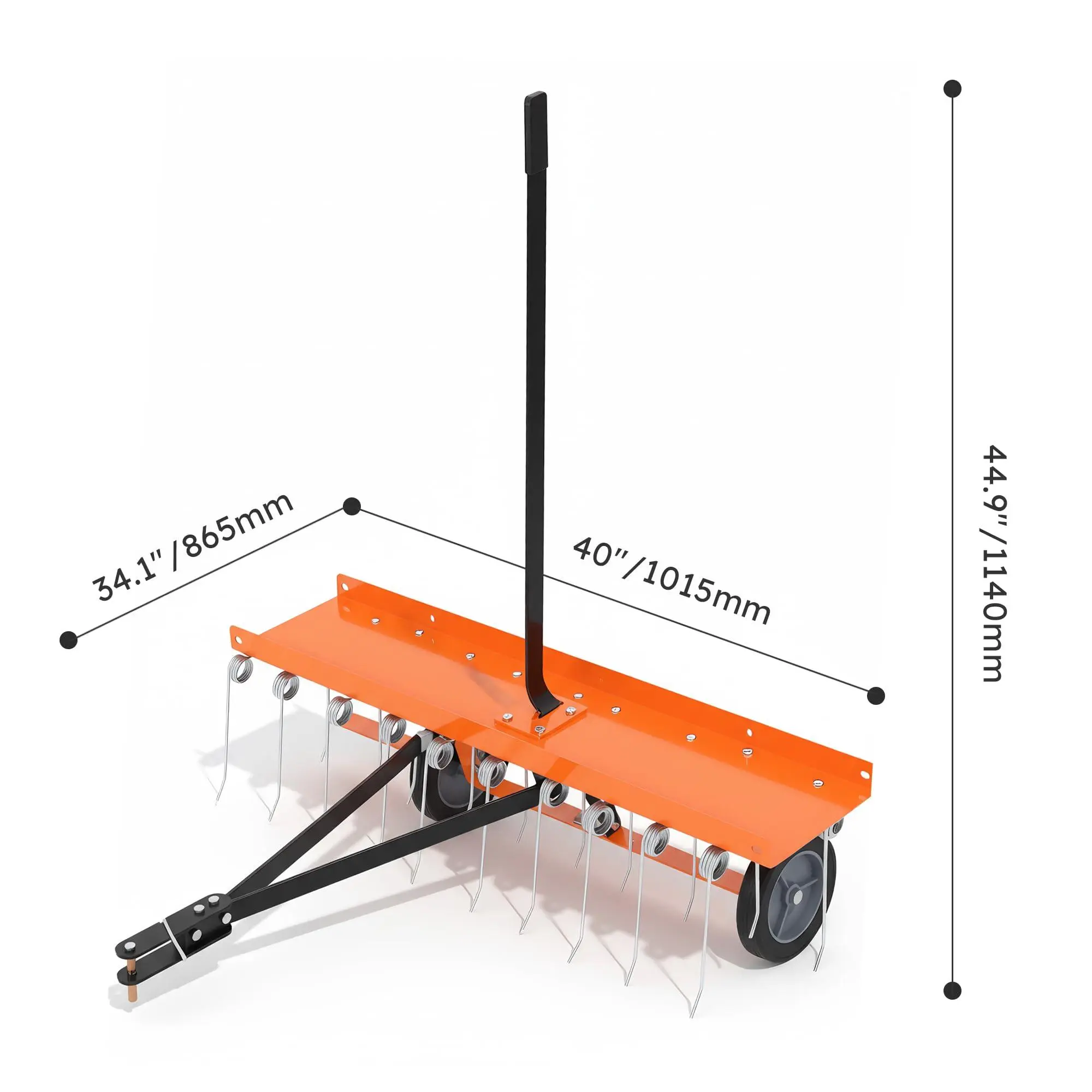 Tow Behind Lawn Rake, 40-Inch Tow Dethatcher with 20 Spring Steel Tines, Lawn Dethatcher Rake for ATV or Mower, Lawn Sweeper with Lift Handle for Garden Farm Grass, Orange