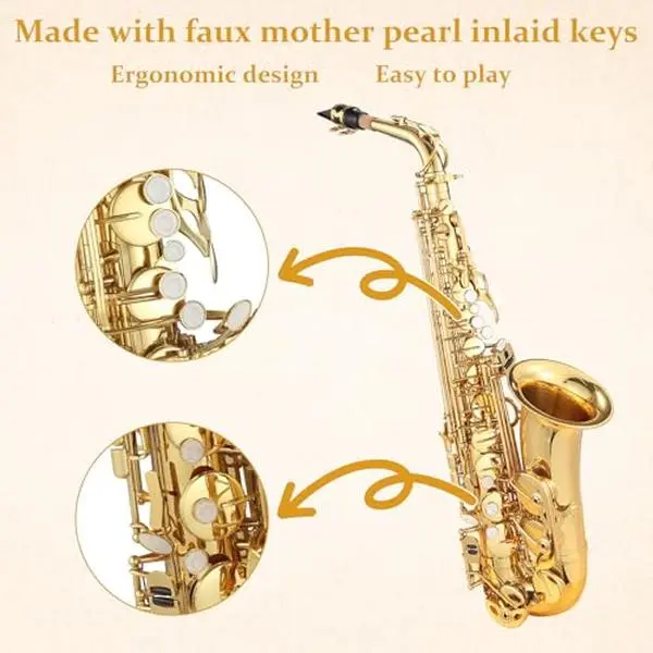 ·Ergonomic Precision Design: Engineered with player comfort in mind, the saxophone features contoured keys and responsive pads that minimize hand strain during extended sessions. Meticulously calibrated mechanisms ensure flawless intonation and effortless fingering for consistently smooth performance.