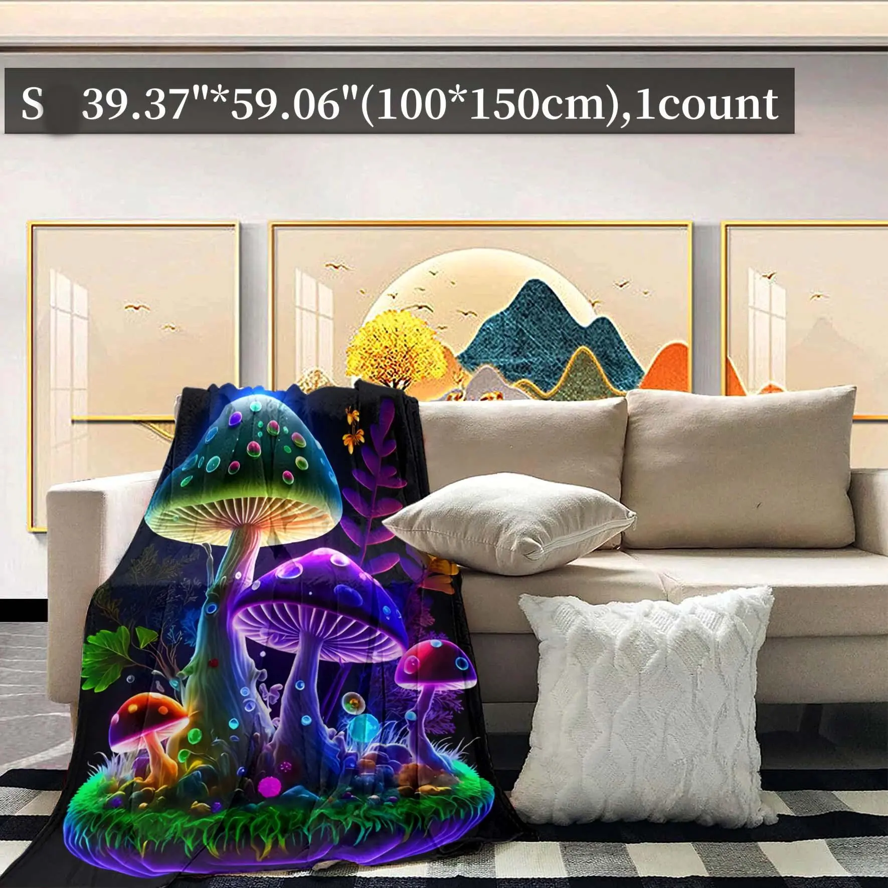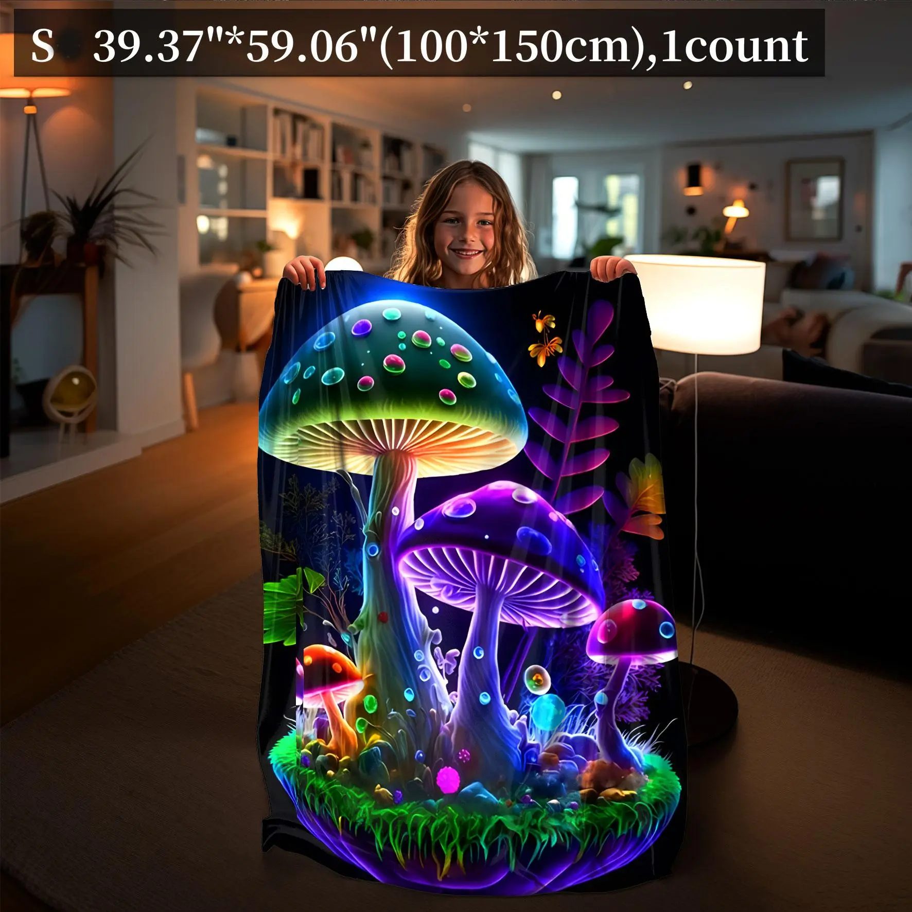 Colorful Mushroom Pattern Blanket, Mushroom Print Blanket, 1 Count Soft Warm Nap Throw Blanket, Air-conditioned Room Blanket for Home Office Travel Camping Dormitory