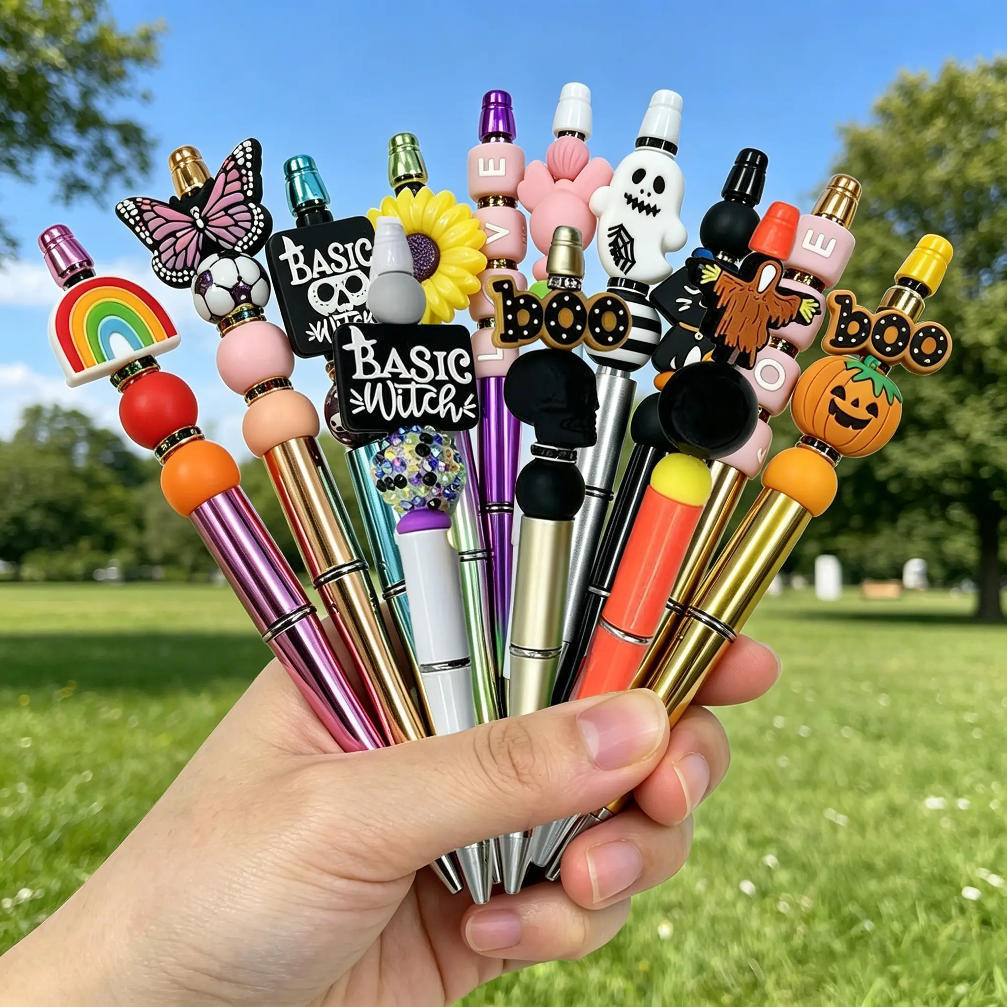 13Pcs DIY Beaded Pen Set Comfort Grip Smooth Writing Pens for Journaling Drawing Crafts with Fun Designs