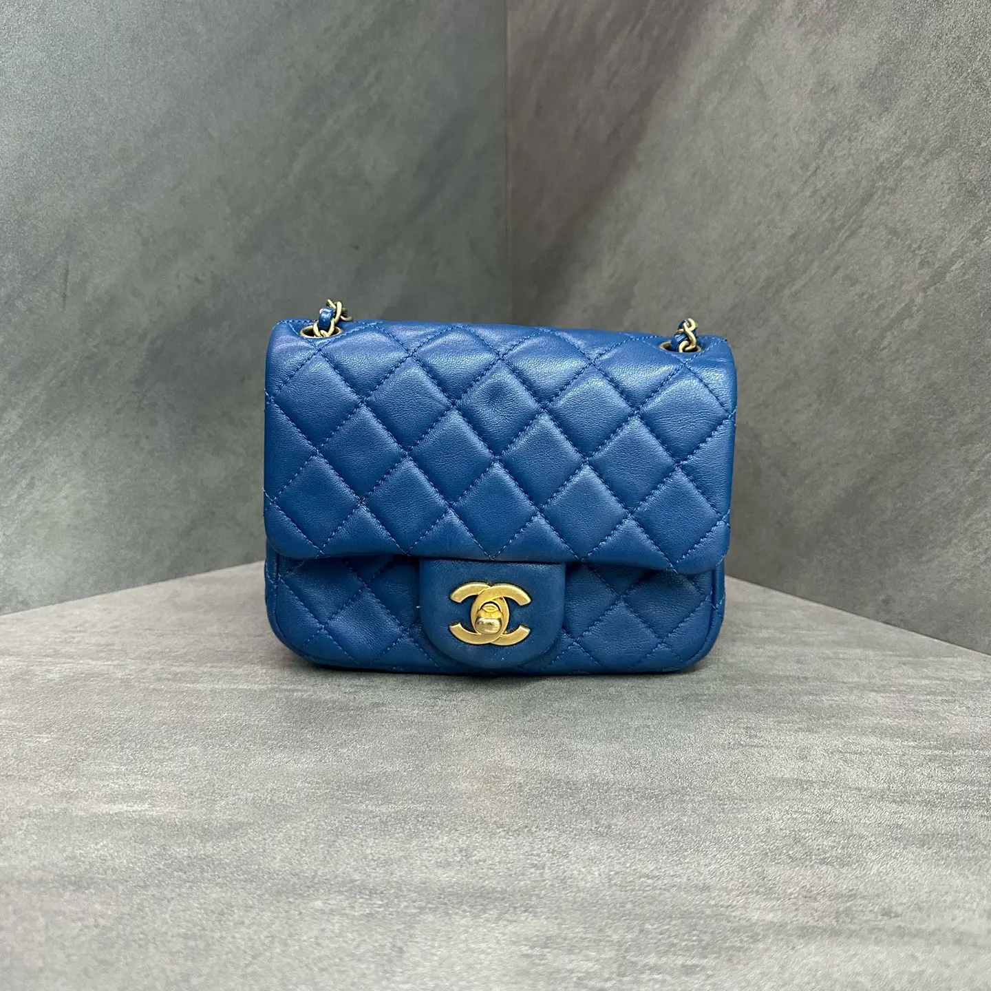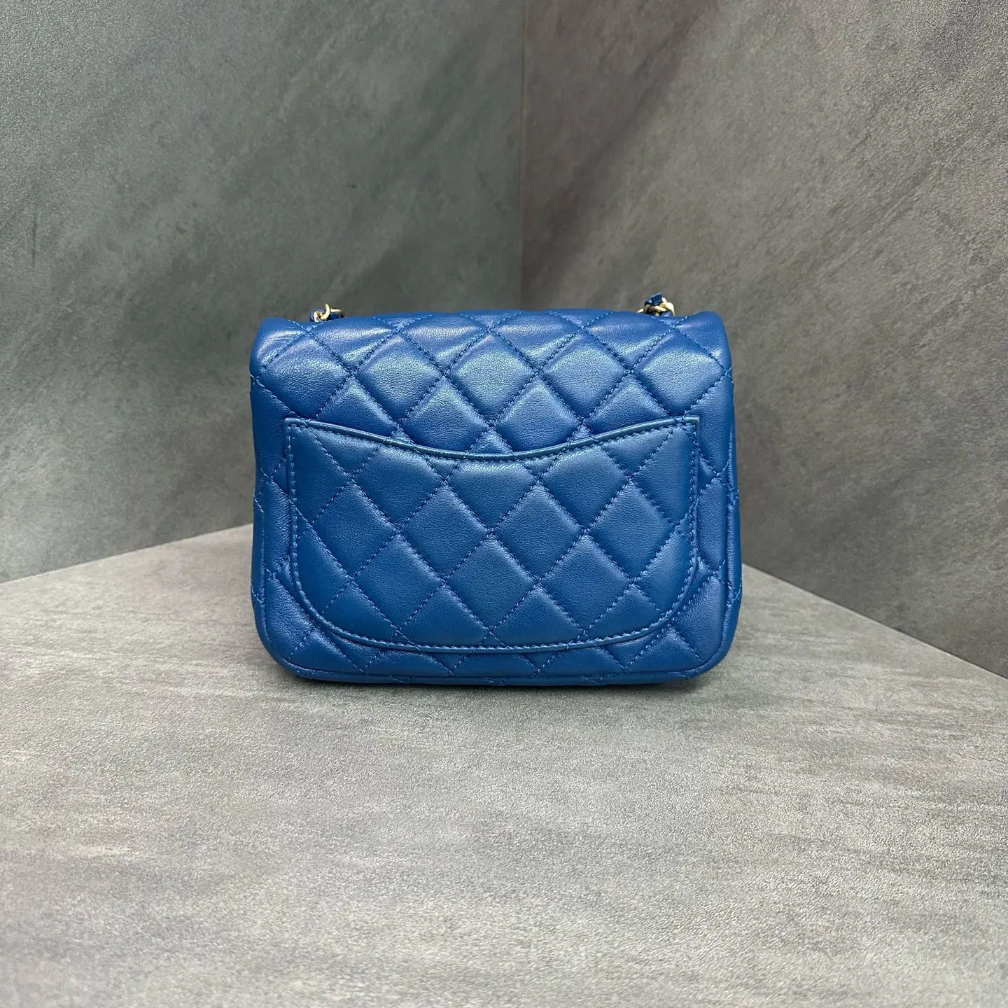 Pre-owned CHANEL Mini Square SN30 Flap Lambskin Blue