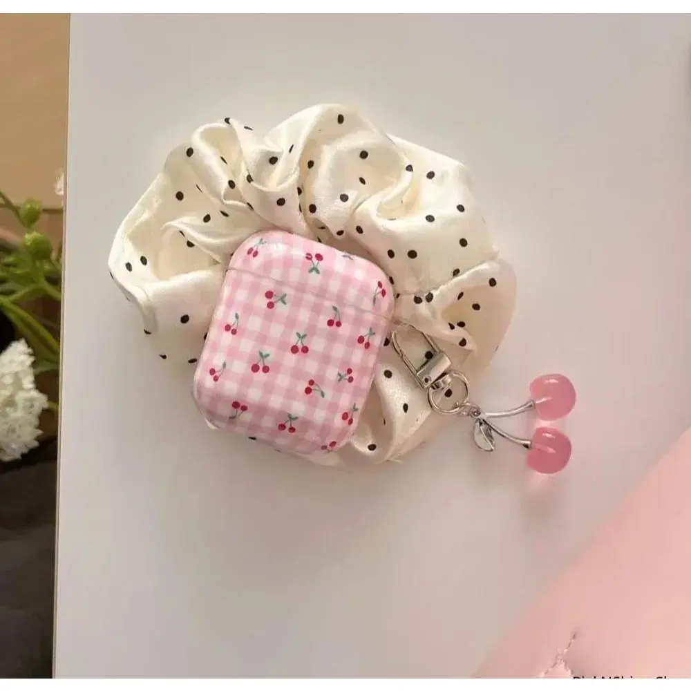 Cute Pink Plaid Cherry AirPods Case – Soft Shockproof Protective Cover, Durable Anti-Drop Shell for AirPods 1/2/3/4/Pro/Pro 2