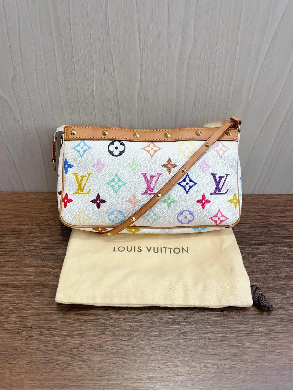 Pre-owned Louis Vuitton leahter Crossbody Bags x Takashi Murakami Monogram Multicolore White Pochette Accessoires