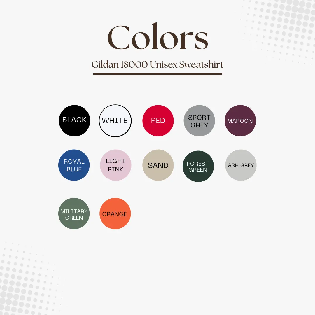·Material - Gildan 18000 - 50/50 cotton/polyester - Heather Sport colors are 60/40 polyester/cotton - 1x1 rib with spandex for enhanced stretch and recovery