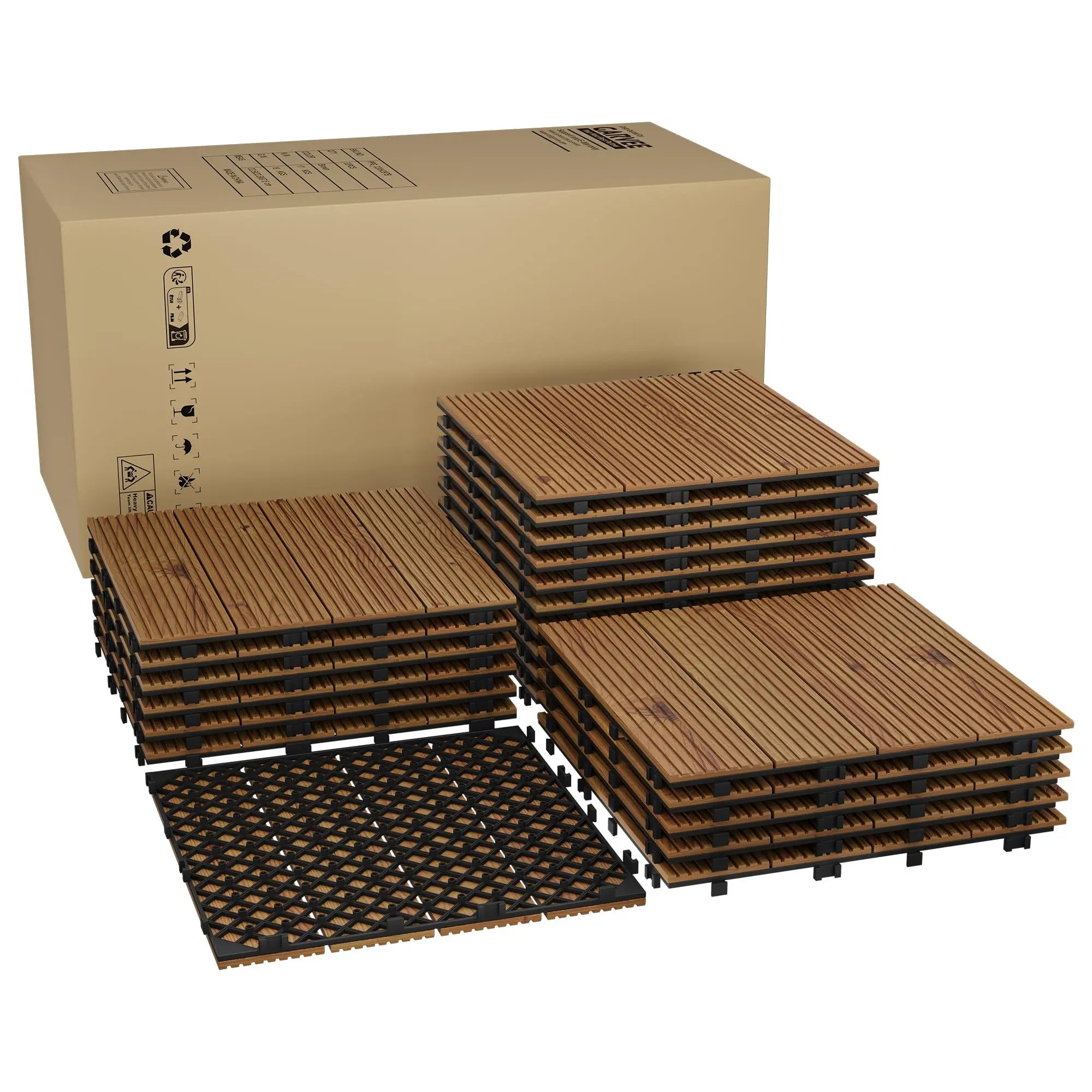 22 PCS Interlocking Deck Tiles, 12"X12" Solid Acacia Wood Flooring for Outdoor & Indoor, All Weather Waterproof Snap Together Patio Tiles for Balcony, Poolside, Deck,Brown