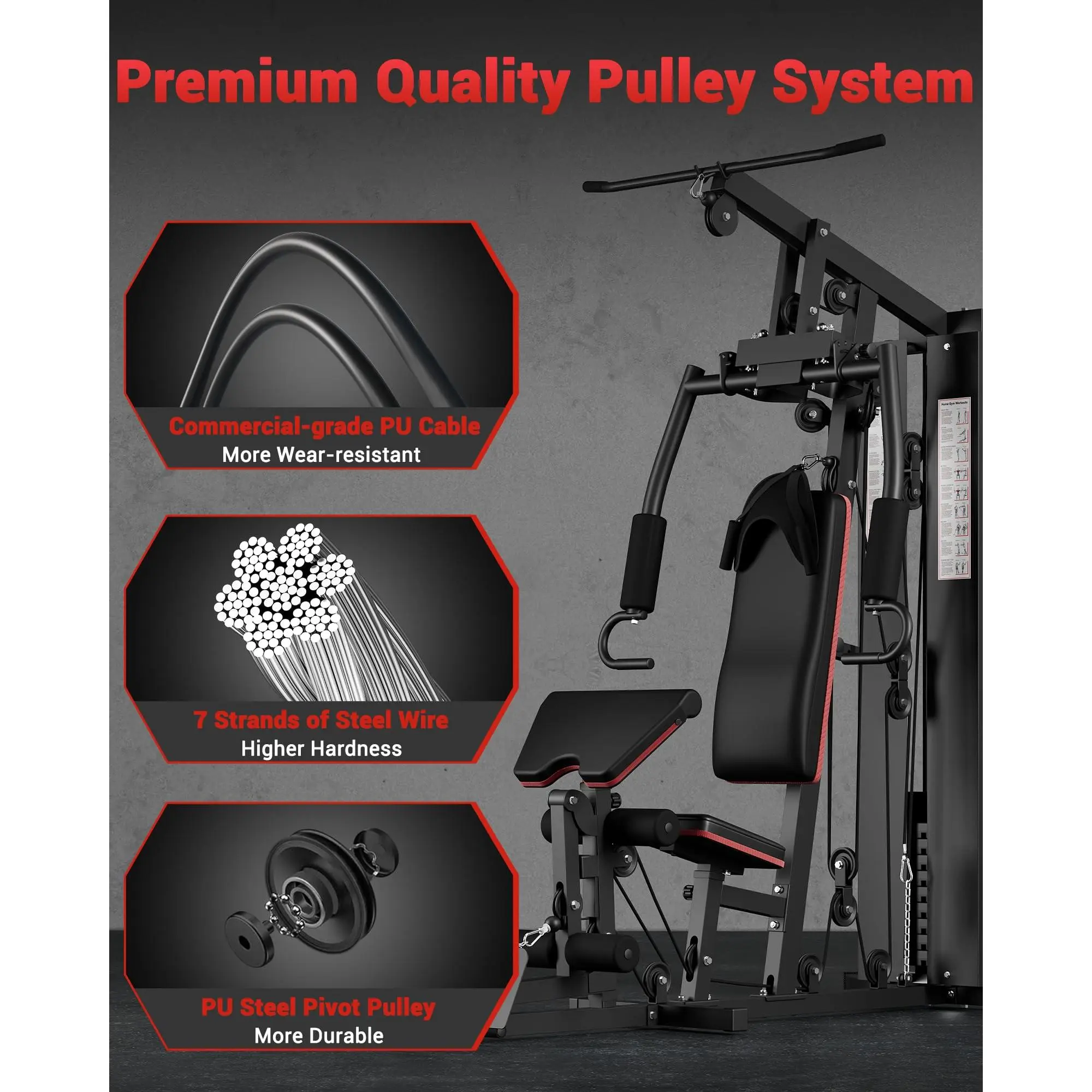 【Smooth Pulley System】Our weight machines for home gym features an pulley system with PU cables constructed from 7×19 steel wire. The pulleys are crafted from PU material and include rolling bearings for smooth movement and low noise during operation.