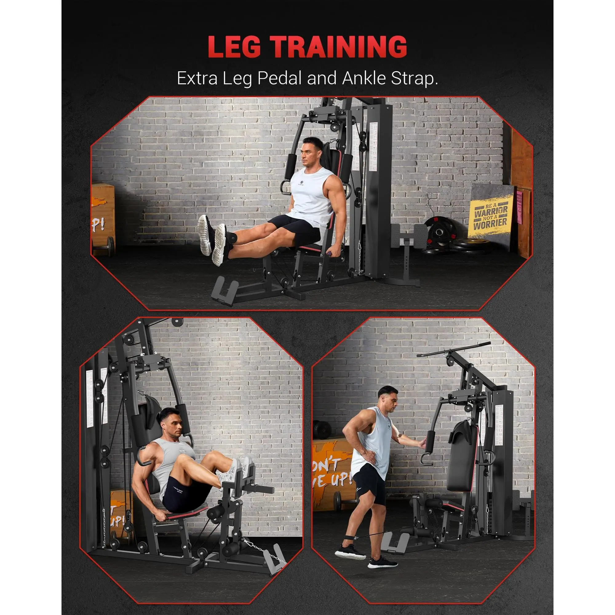 【All in One Home Gym】This multifunctional workout station includes Preacher Curl Pad, Leg Developer, Abdominal Band, Ankle Strap, chest press, butterfly chest, lat pulldown, low row, leg extension, back extension and so on. Equipped with 9+1 weight plates at the same time, with a total weight of 150LBS, you can exercise according to your own needs.