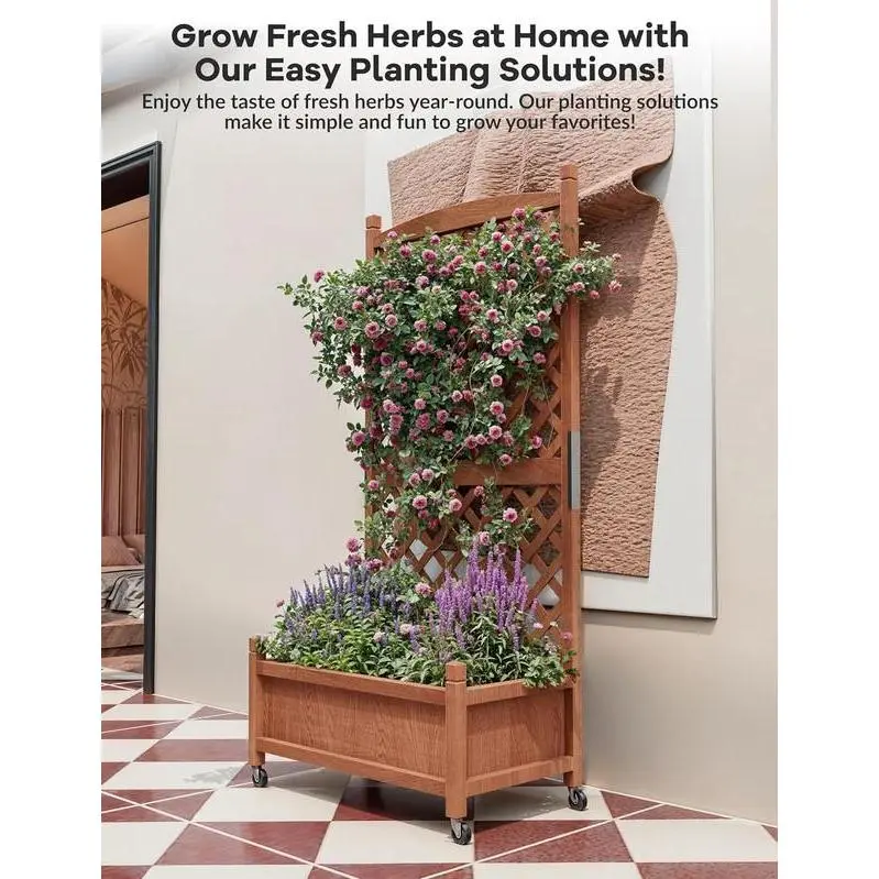5,Versatile Planting Options: This multi-purpose planter accommodates diverse plants - from herbs and vegetables in the deep bed to climbing varieties on the trellis. Create your own kitchen garden, floral display, or green privacy screen. Perfect for balconies, patios, or indoor spaces where you want to combine functionality with natural beauty.