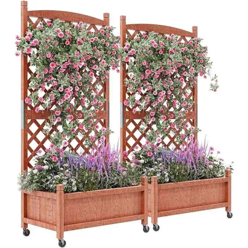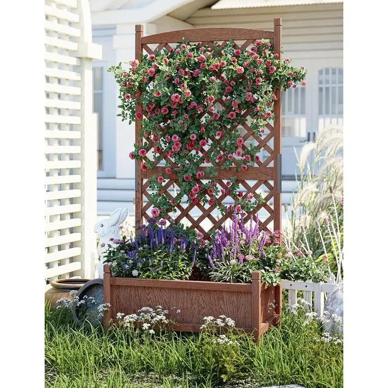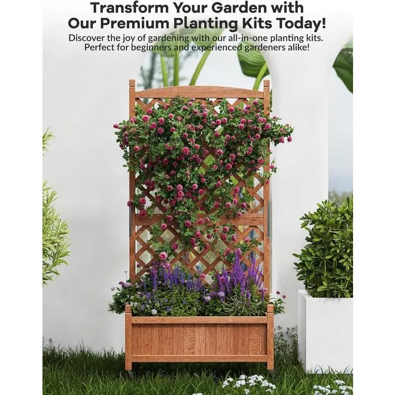 3,Decorative & Functional Trellis: The built-in wooden trellis adds charm to any space while supporting up to 25kg (55lbs) of climbing plants. Its rich, deep brown finish complements indoor and outdoor settings alike. Ideal for vines, creepers, or flowering plants, this trellis helps maximize vertical growing space in style.