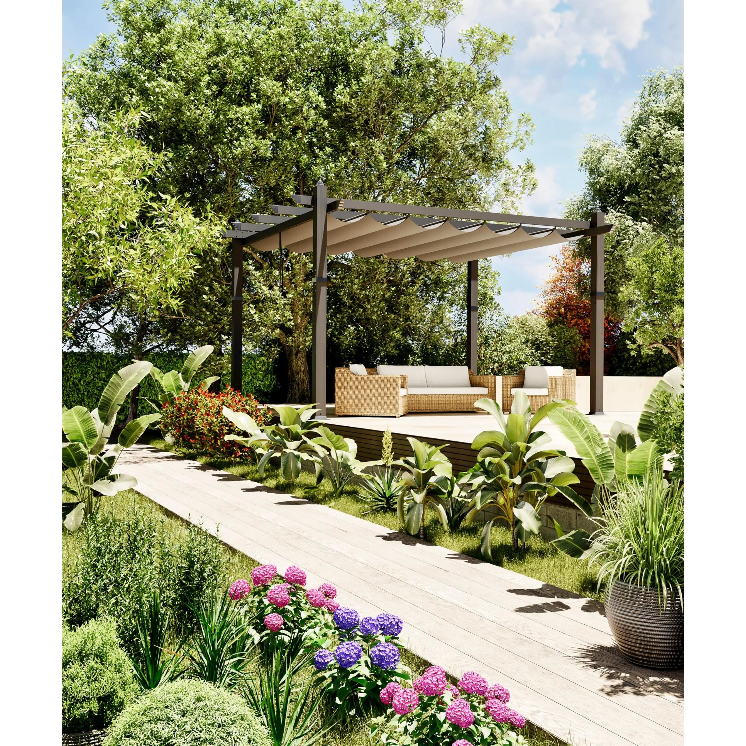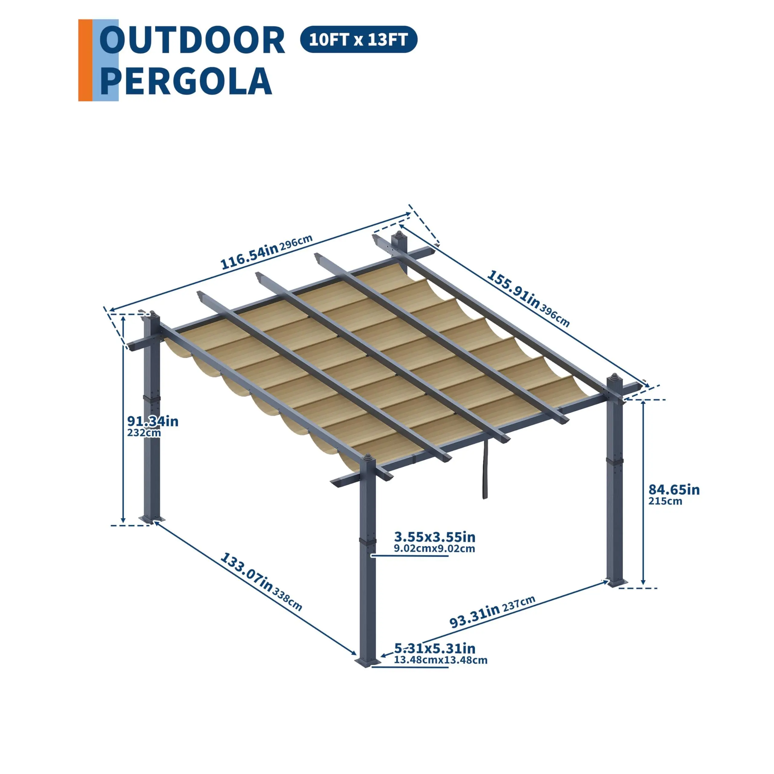 【UPGRADED FRAME CRAFTSMANSHIP】- Our outdoor pergola features a powder-coated finish that is rust and corrosion-resistant, with a wall thickness of 1 mm, which enhances stability and prevents deformation, ensuring long-term use