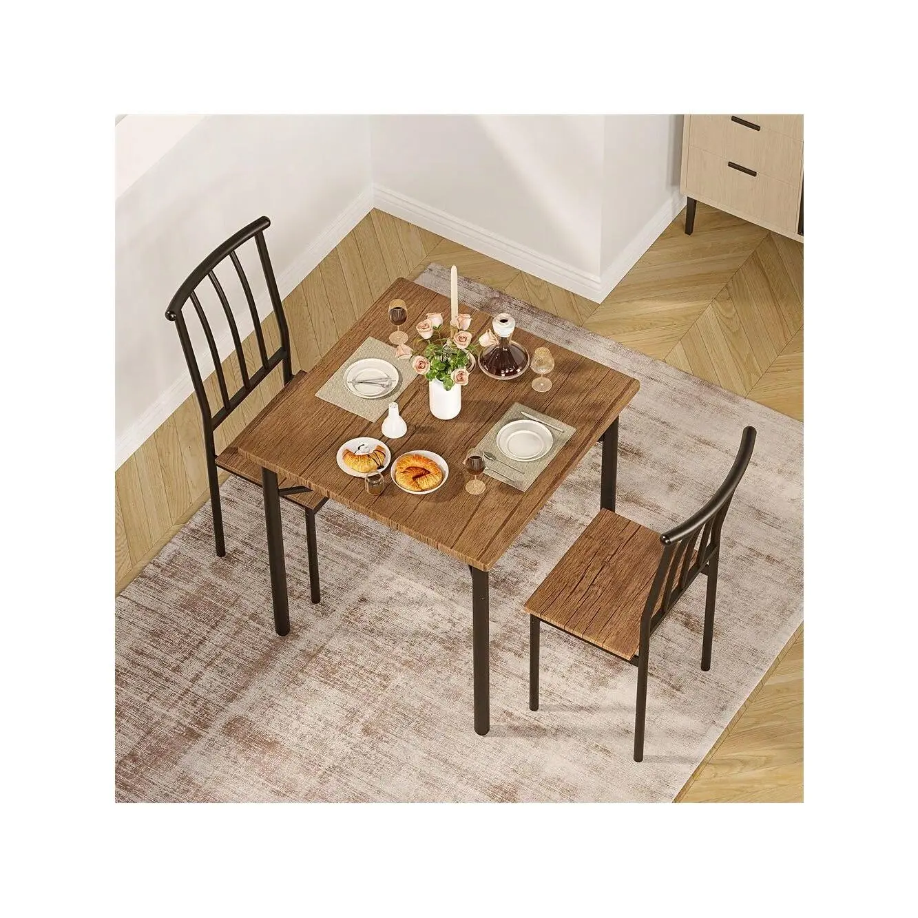 Dining Table Set 3 Piece Dining Table Set For 2 Square Kitchen Table Set With 2 Chairs Dining Table Set With Wine Rack For Small Space Apartment Breakfast Corner Retro Brown